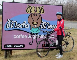 Never mind that it was 40 degrees and cloudy. Never mind that there was going to be a headwind on the way back. Never mind that “real athletes” never stop. It was warm and friendly inside Mocha Moose. The decor was eclectic, as required fo