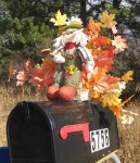 Living out in the country means more space, remoteness, and perhaps some gardening or farming. But apparently it also lends itself to greater creativity when it comes to yard displays. On recent bike rides, I couldn’t resist capturing some of the fun fall yard decorations that I passed along the road. Scarecrows were popular, but so were simple hay and pumpkin designs. My personal favorite is the colorful scarecrow family, whose pumpkin heads are filled with straw. I’ll take these over strings of pumpkin lights any day.
