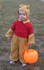 We had great fun trailing Pooh and Piglet around their neighborhood on Halloween. No tricks – just seeing them in their costumes was a treat.