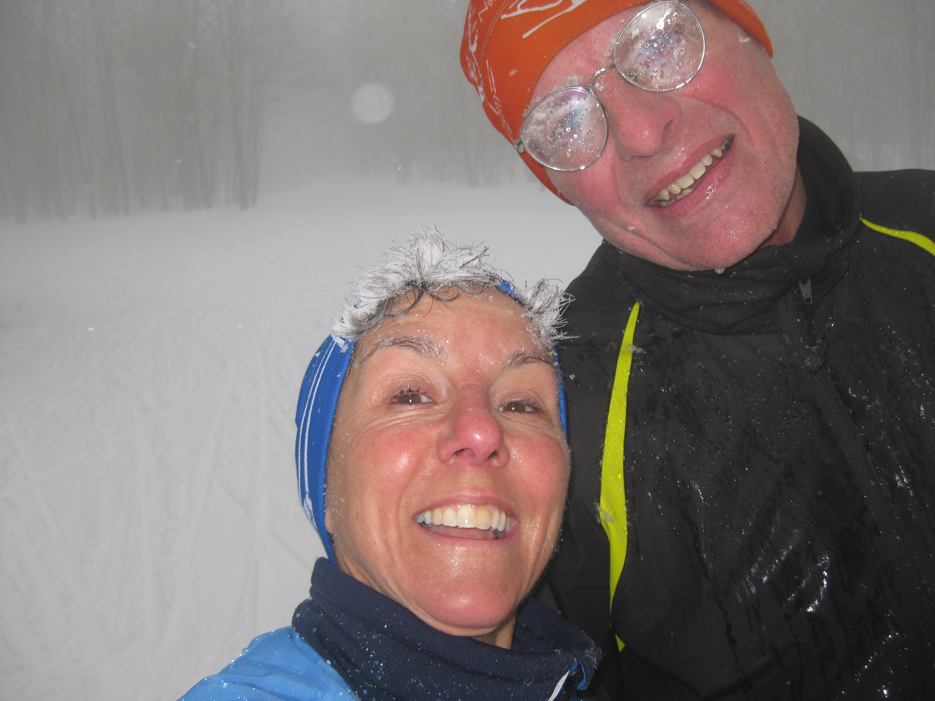 I next skied at Snowflake Nordic Ski Center, while Rich took a break at home (he was, after all, only a week out of the hospital…). I chose the 5k loop, which I navigated twice enjoying its gentle rolling terrain. Visibility had improved, and the skate deck was snowy but firm – probably the best skiing of the day.