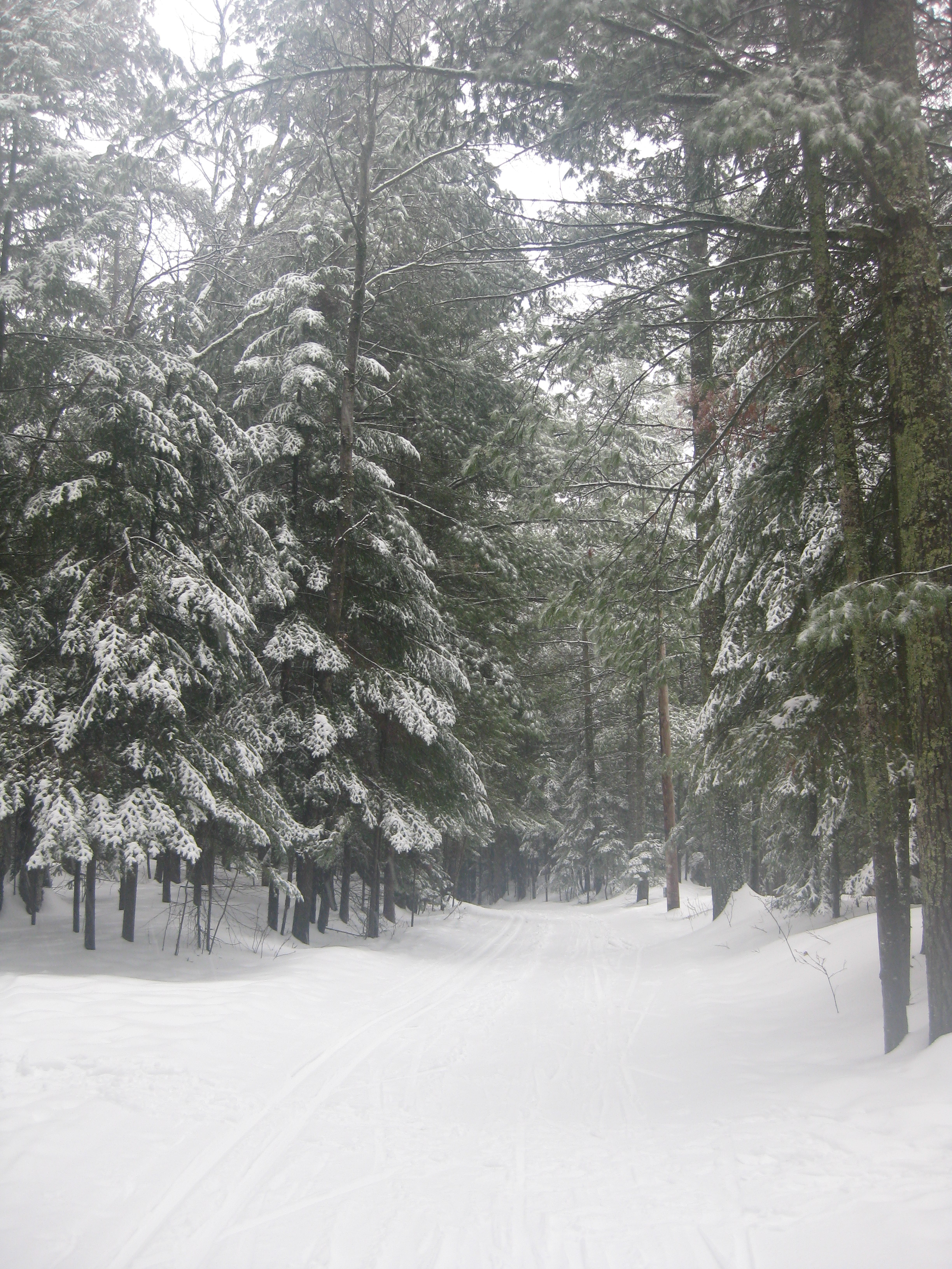 the connecting trail systems. I was quickly reminded how narrow and hilly the Magney trails are, although I had no fear of the steep downhills this time as our speed was checked by the sticky new snow.