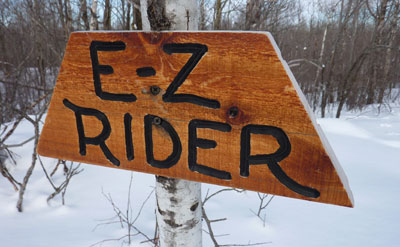 Our next stop was the Piedmont XC trails. This one was completely new to us, and turned out to be a charming spot with a fascinating history. The 5.5k of classic trails wend though aspen and birch. But what made it unique were the signs. About 45 hand crafted wooden signs provide humor, puns and inspiration to skiers all along the route. It was in the parking lot following our enjoyable sojourn out on the trail, that by pure luck we met Jerry and Glen. The youthful 88-year-olds originally carved the trails out of the woods in 1960 and maintained them until the city took them over in 1980. And it is they who take great pride in posting the signs. We thoroughly enjoyed their stories and marveled as they headed off for their daily ski.