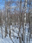 The beautiful sunny afternoon was too much to resist, so indeed I went out snowshoeing again. Trying to redeem myself from getting lost this morning, I followed a different route this time, in the footsteps of another snowshoer, and the views through the woods were beautiful. I can’t say I was entirely successful in finding the path I intended to follow. I’m now content to believe it has disappeared under all the snow. And I ended up on Lester River again… But it was all so pretty in the sunshine that I didn’t mind.