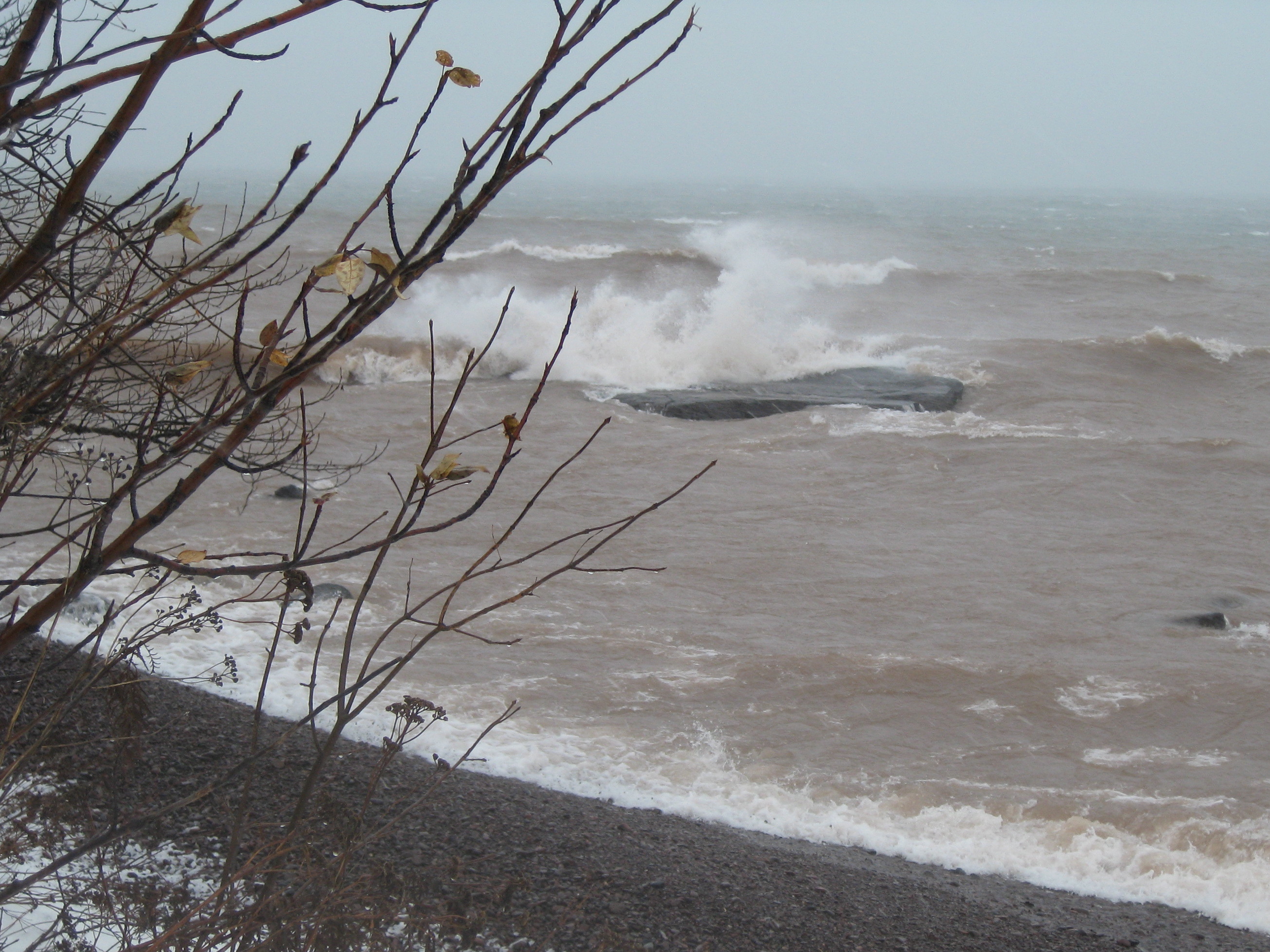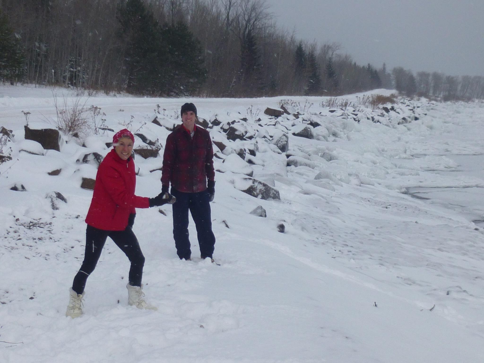 much thinner there, but Brighton Beach’s rocks were encased in a thick coat of ice, which was beautiful but treacherous for any kind of foot travel. Backing up from the shoreline, we found a cache of rocks under the snow and proceeded to do what any kid would do there – throw rocks in the lake. Since the shoreline was ice-bound, it became a game to see who could break through the ice with a rock, producing a mini spurt of water through the hole. What better way to spend Christmas afternoon, than having a rock throwing contest amid ice and snow?