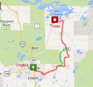 By definition, today’s route was one big downhill run. Starting in Ely and ending up at Lake Superior means dropping over 800 feet in elevation over 62 miles. What more could a cyclist ask for? Well, good weather, a tailwind, and beautiful scenery for starters. And we got all those too!