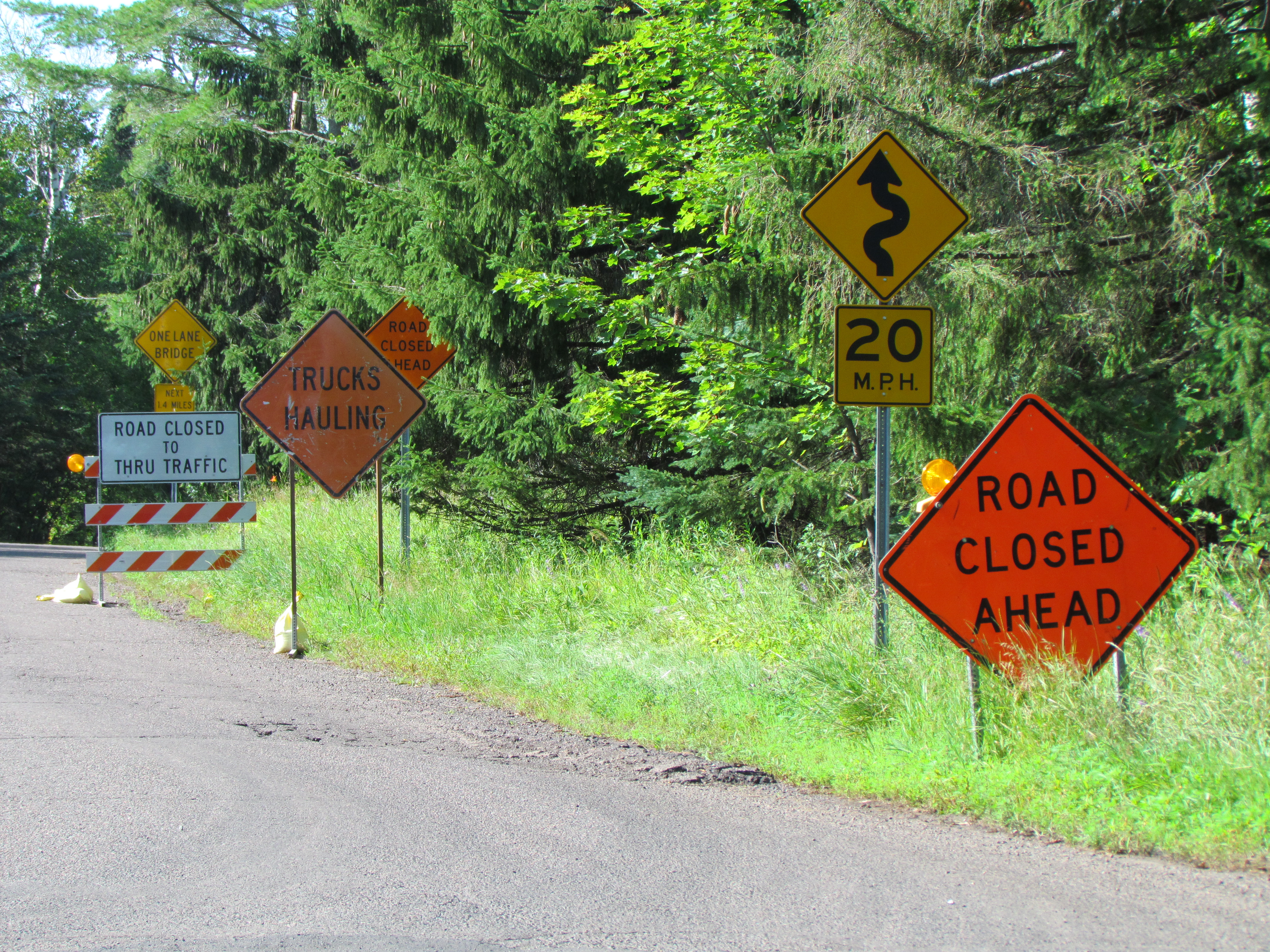 The 3rd bridge is still undergoing repairs. The footings have been replaced, and where the road was falling away from the bridge, a new concrete extension is in the works. Soon it will be rocked in to look like the rest of the bridge. A nice touch.