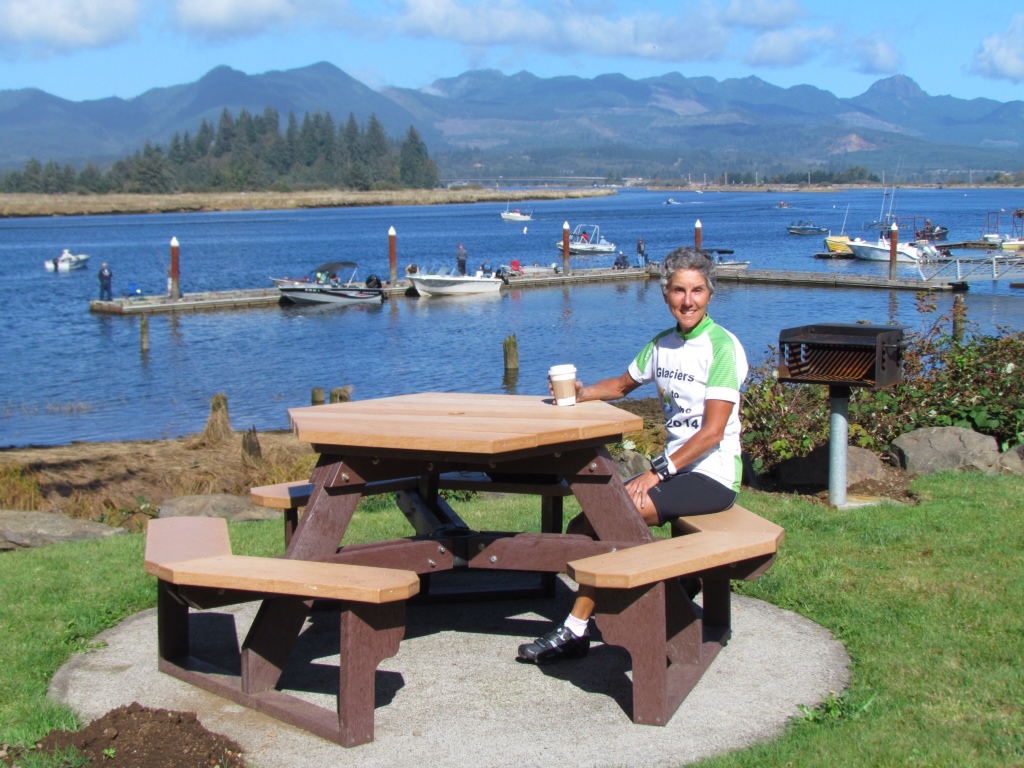 The bistro was bustling and crowded. It was peak Sunday breakfast time, and we vied for a table with the locals in Astoria after cycling our first 18 miles for the day. Glancing out the door, I noticed another cycling couple locking their bikes out front. It didn't take long before we were making introductions and comparing cycling notes. Nabbing an outdoor table that had just come free, we invited our new friends to join us. Thus started our most enjoyable meal yet.