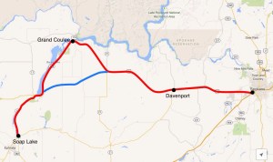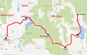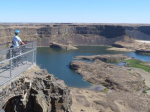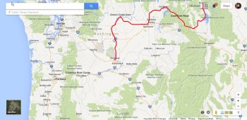 Our route to get here revealed a changing climate and farmland use. We left behind the wheat fields, which we have now learned is termed “dry wheat” for its lack of irrigation. In its place, we traveled through more diverse farm interests. Corn fields, green crops, even vineyards and the ever famous Washington apple orchards dominated the landscape. And the long spiny rotating irrigation structures were prevalent everywhere, fed by the waters of the Columbia River. We also coined a new term, “vegetarian roadkill,” for the fallen onions, corn cobs, zucchini, apples and other produce that had fallen on the roadside on the way to market.