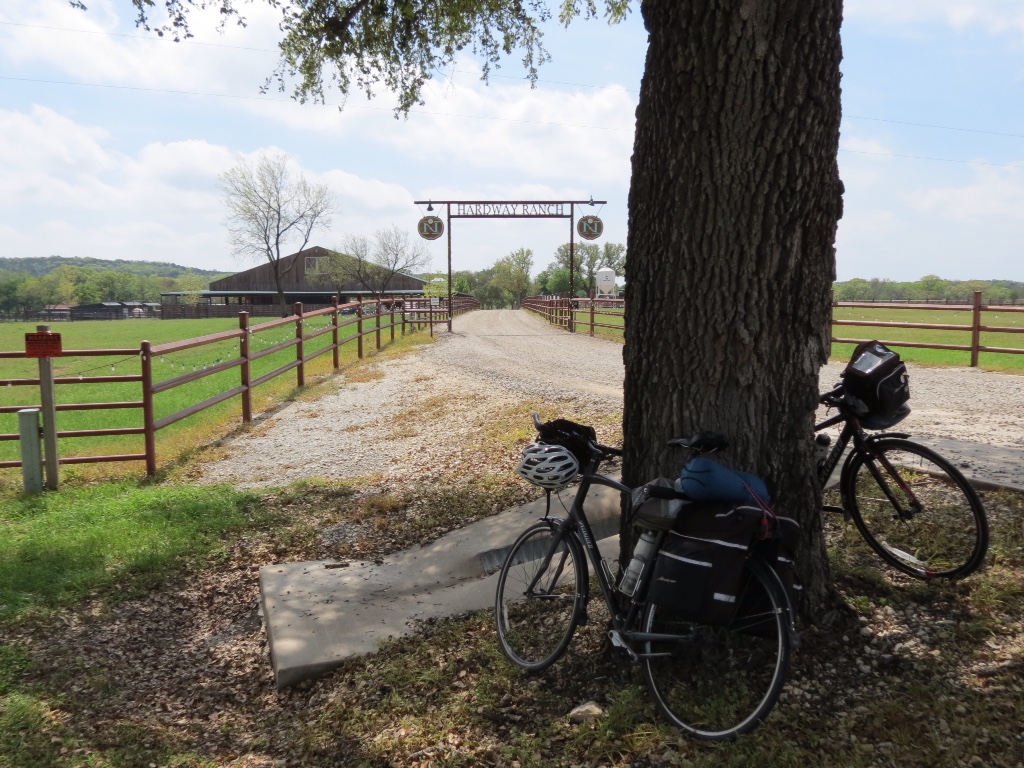 Shortly afterwards we reached Granbury and turned to the southwest which was our main direction for the day. By that time the wind had come up and was now gusting fiercely, right in our faces. It was a battle just to make headway, and to add to the difficulty, the terrain rolled continually. Up and down we went, pedaling just as hard on the downhills as we did going up. The miles crawled by, but as a compensating factor the clouds cleared providing us with a nice sunny afternoon. That would have been lovely, had the temperature not risen into the 80s. For two Minnesotans who had not seen much over 50 yet this spring, it felt mighty hot out there.