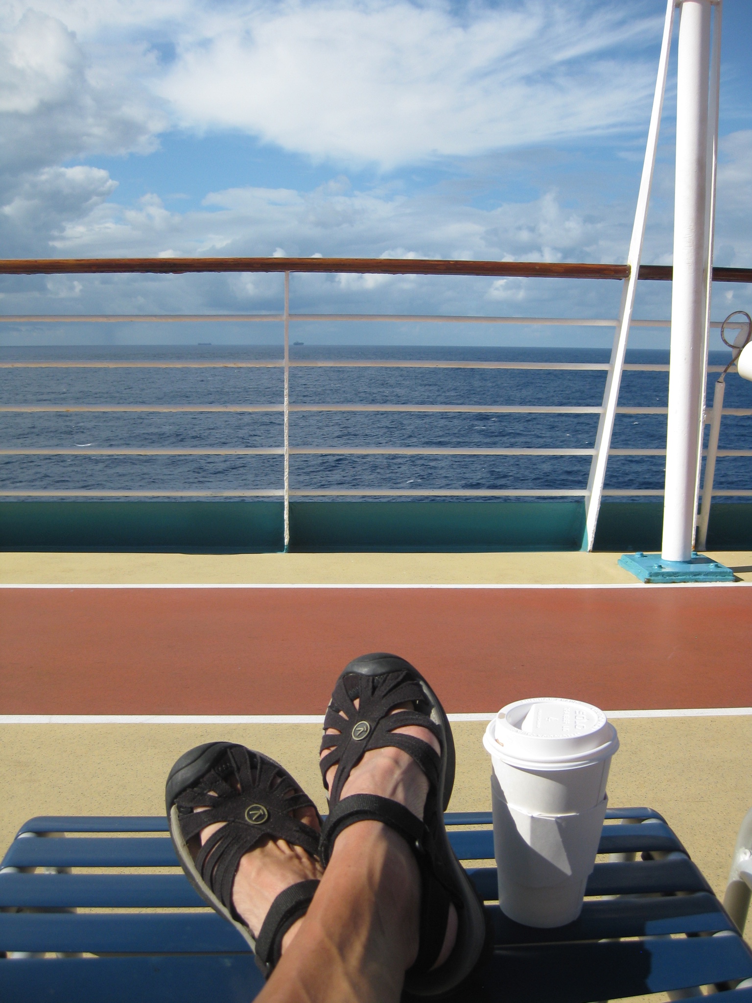 It’s surprising how quickly time can pass when doing nothing. Before long I will have to rouse myself to dress for dinner, it being formal night. First I’ll lounge in the sun a little longer. Read more of my book. Doze. And watch the waves go by. While I’m at sea.