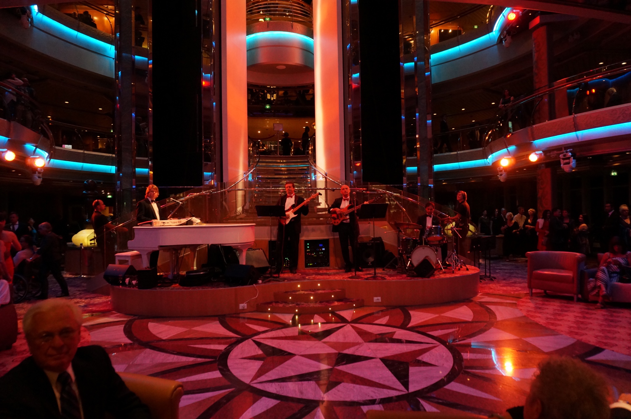 We round out the evening with the nightly show. The headliner acts are very good, bringing in amazing acrobats, humorous string musicians, and mind boggling magicians. These are supplemented by staff musicians and dancers who keep us entertained. They even take to the air with aerial acts in the tall Centrum space. Late night people that we are (not!), we don’t last much beyond this show. After all, tomorrow is another day, a new destination and a deck chair awaiting.