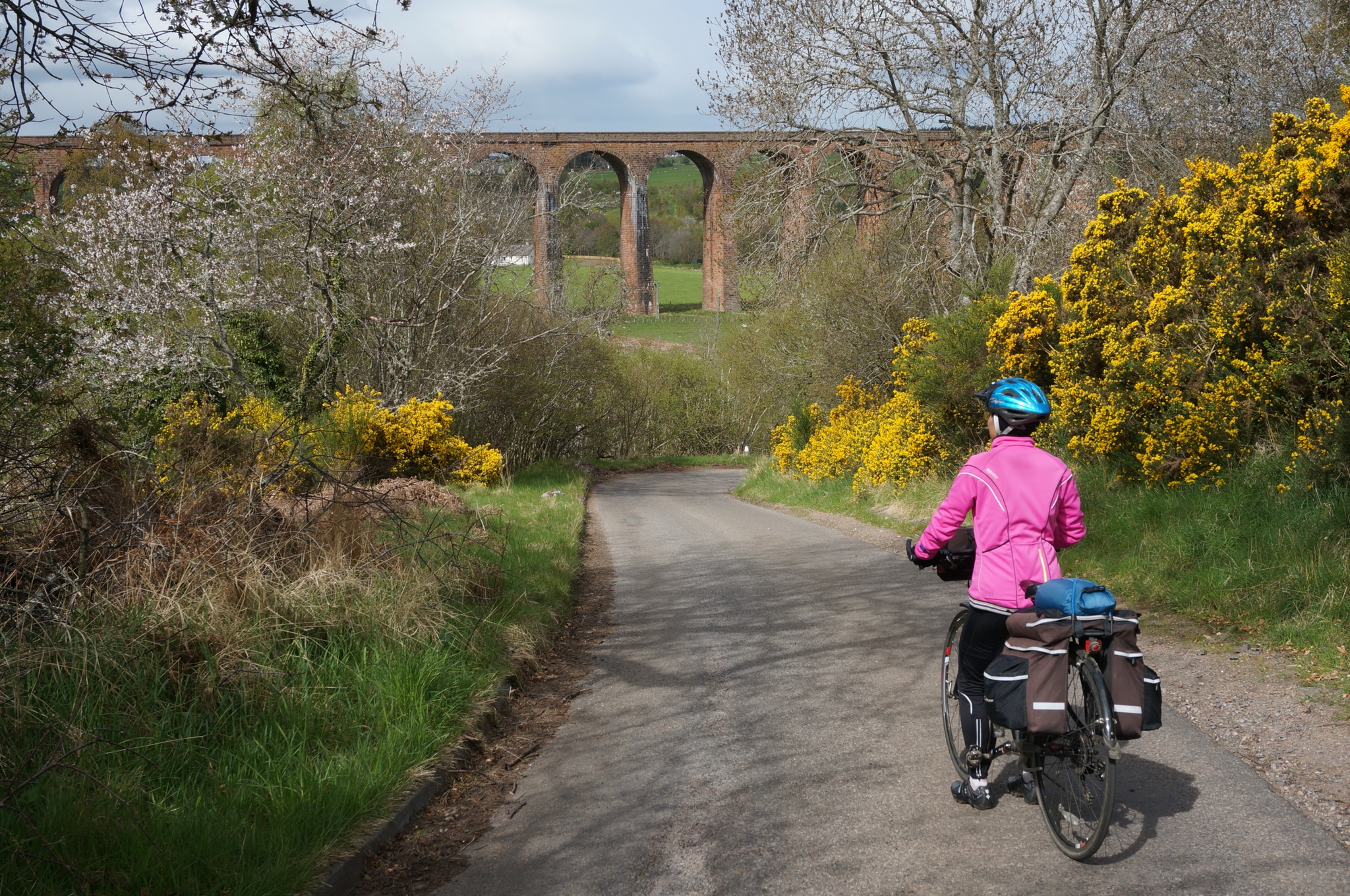 En route to Inverness, we came upon the Nairn Via Duct. We could see it in the distance as we approached, hoping we might get to cycle over it. Instead, we zoomed down, down, down to get to its base and passed under its massive arches. It was mighty impressive even from below.