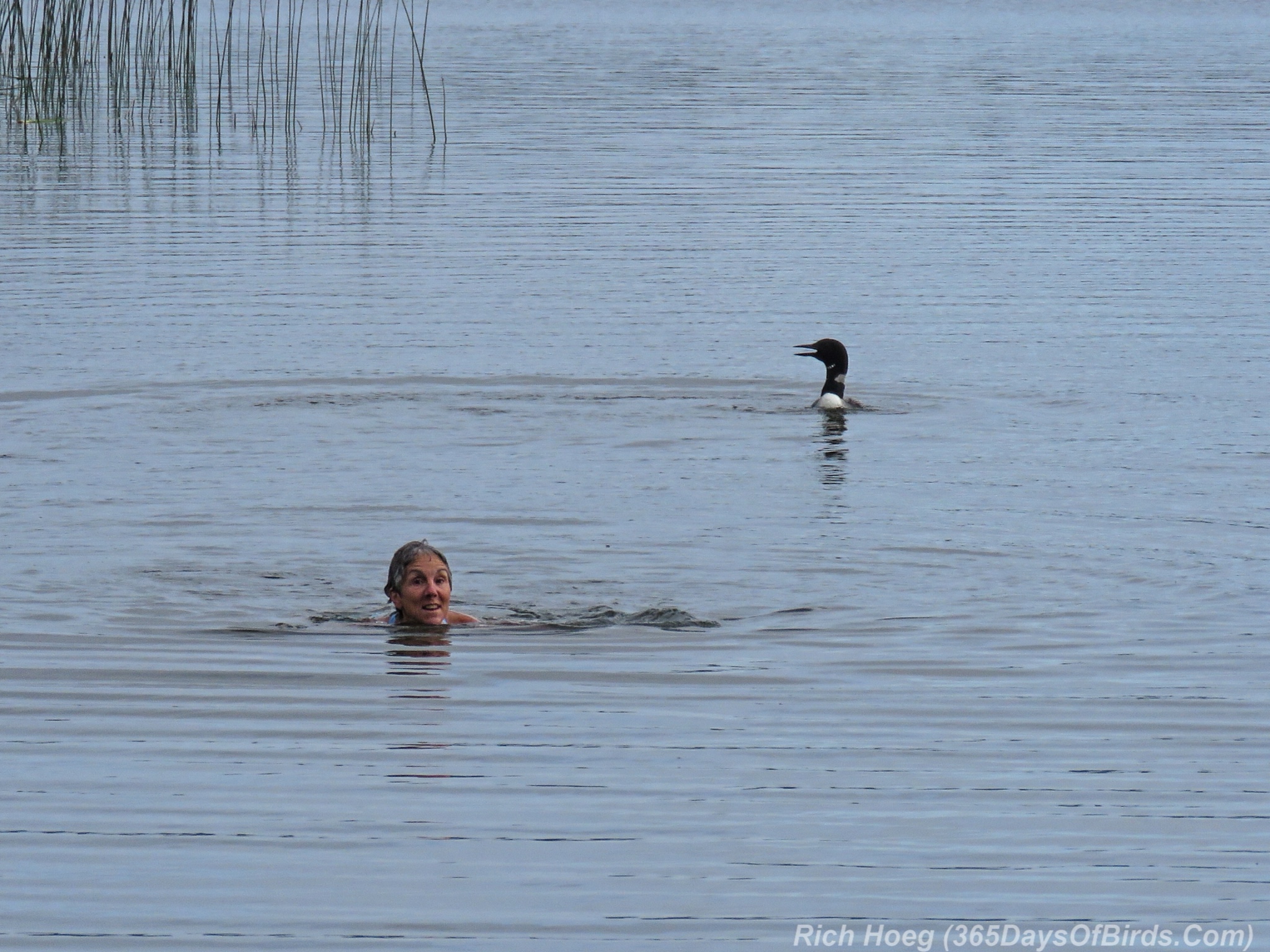 It isn’t over yet. Swimming is my greatest love at the cabin. And I do so love the loons. Just not at the same time. My hope is that by our next visit the baby loons will have a greater range, and they will have moved on from my swimming hole. I’m not particularly fond of feuding with a loon.