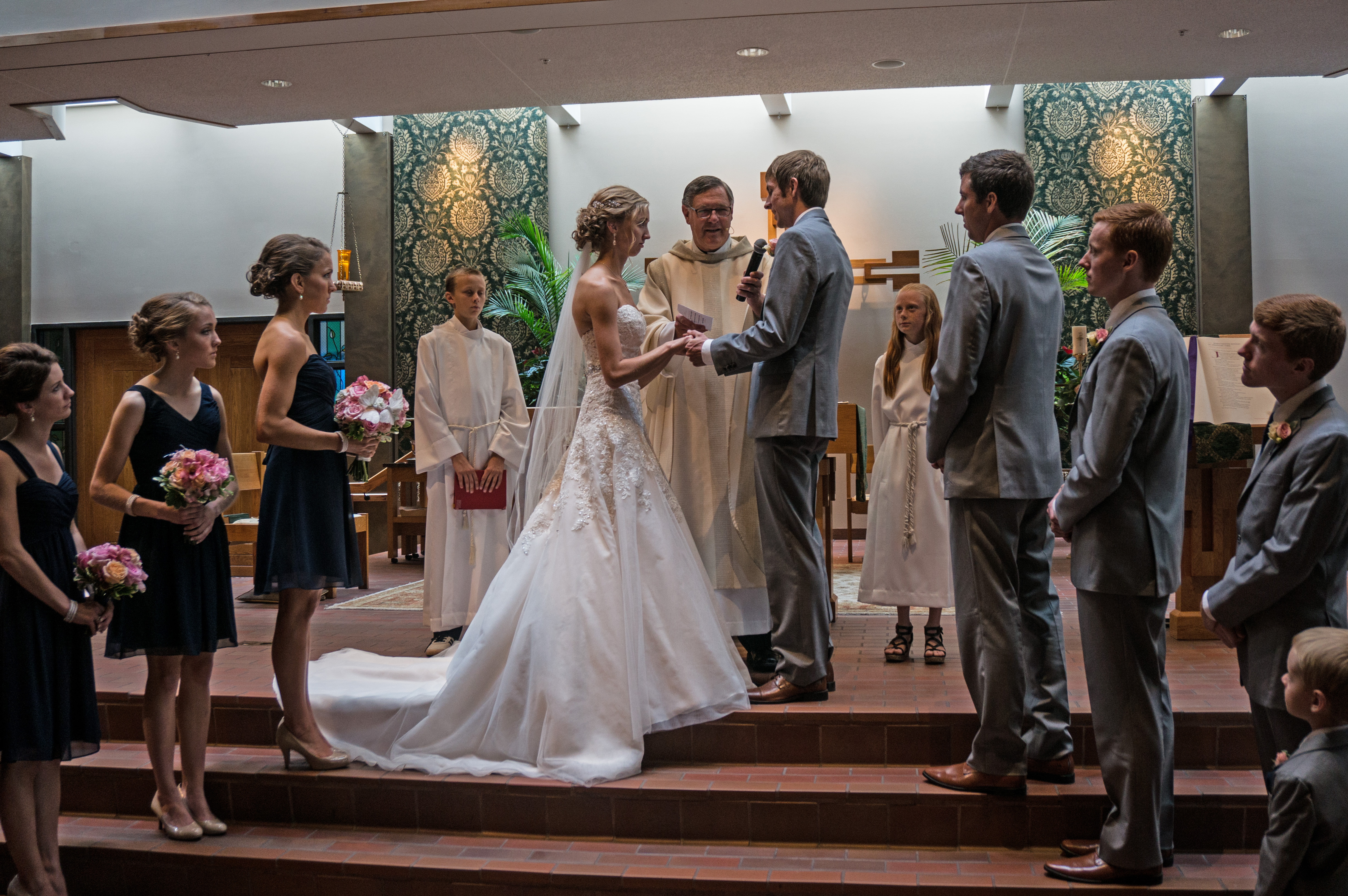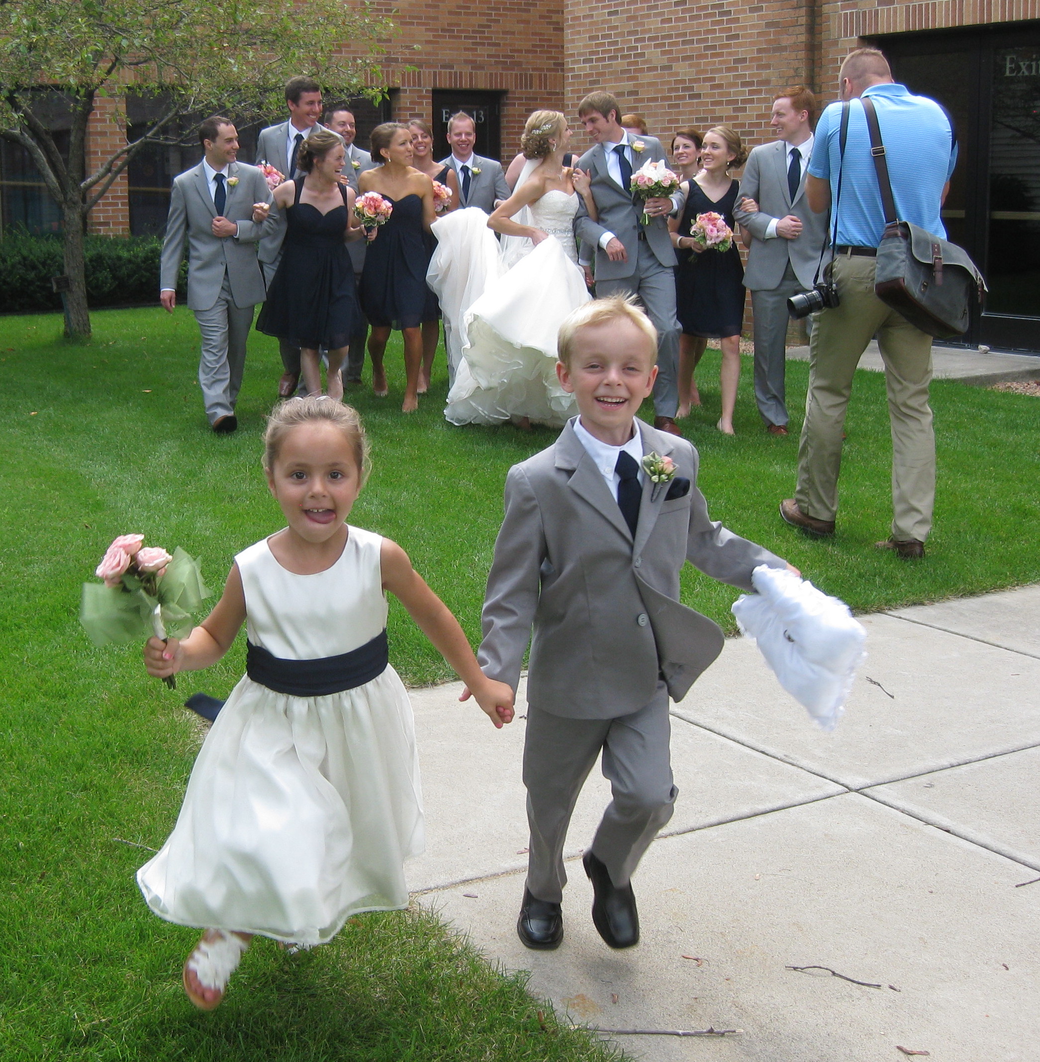 Wedding morning, Mya dons her dress under protest at first. But finally overcomes her objections when Katie whispers that she wants her to “look just like her” in a white dress. Ben asks Daddy to get him dressed in the room with the groomsmen, and emerges looking just like the rest of the guys. Isabel, wisely, is outfitted in her dress at the last minute. And I’m swelling with pride at seeing them in their wedding finery for the second time. Then I turn my attention to being Mother of the Groom. It is, after all, Erik’s wedding day.