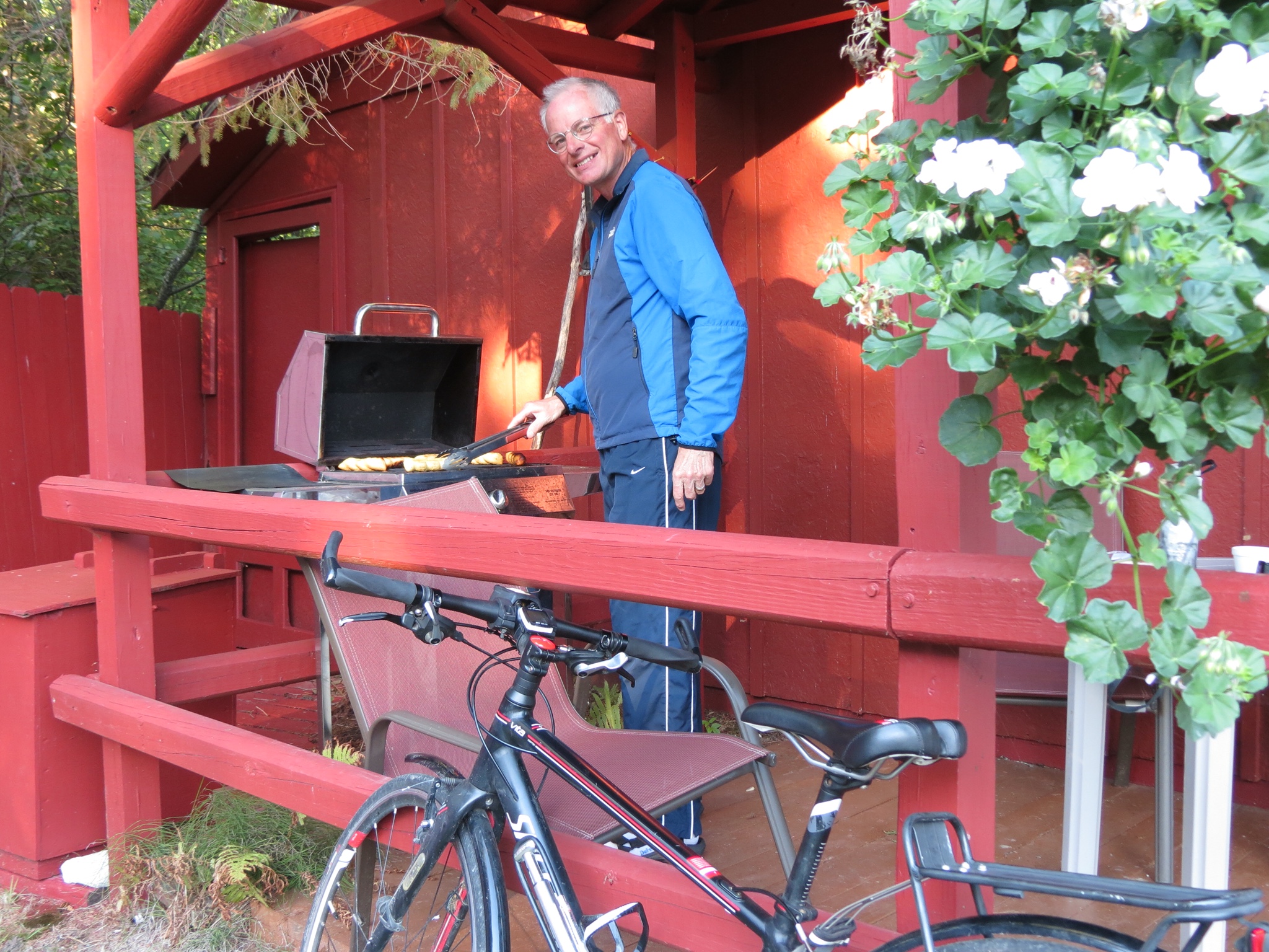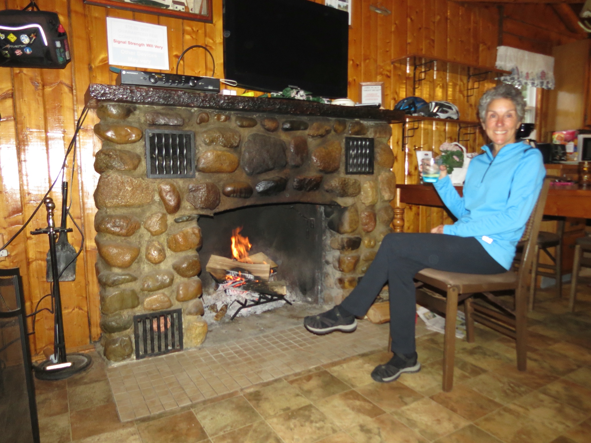 We finished cycling early this afternoon due to the dreary, wet weather. I'm so glad we have space to spread out, ducks to watch on the lake and very peaceful surroundings. Soon we will start a roaring fire in the fireplace. Wine is chilling in the fridge, and we have an “interesting” dinner planned. No, this is definitely not the last resort for us. In fact, tomorrow night we've already booked a room in a fishing lodge. It was an easy choice.