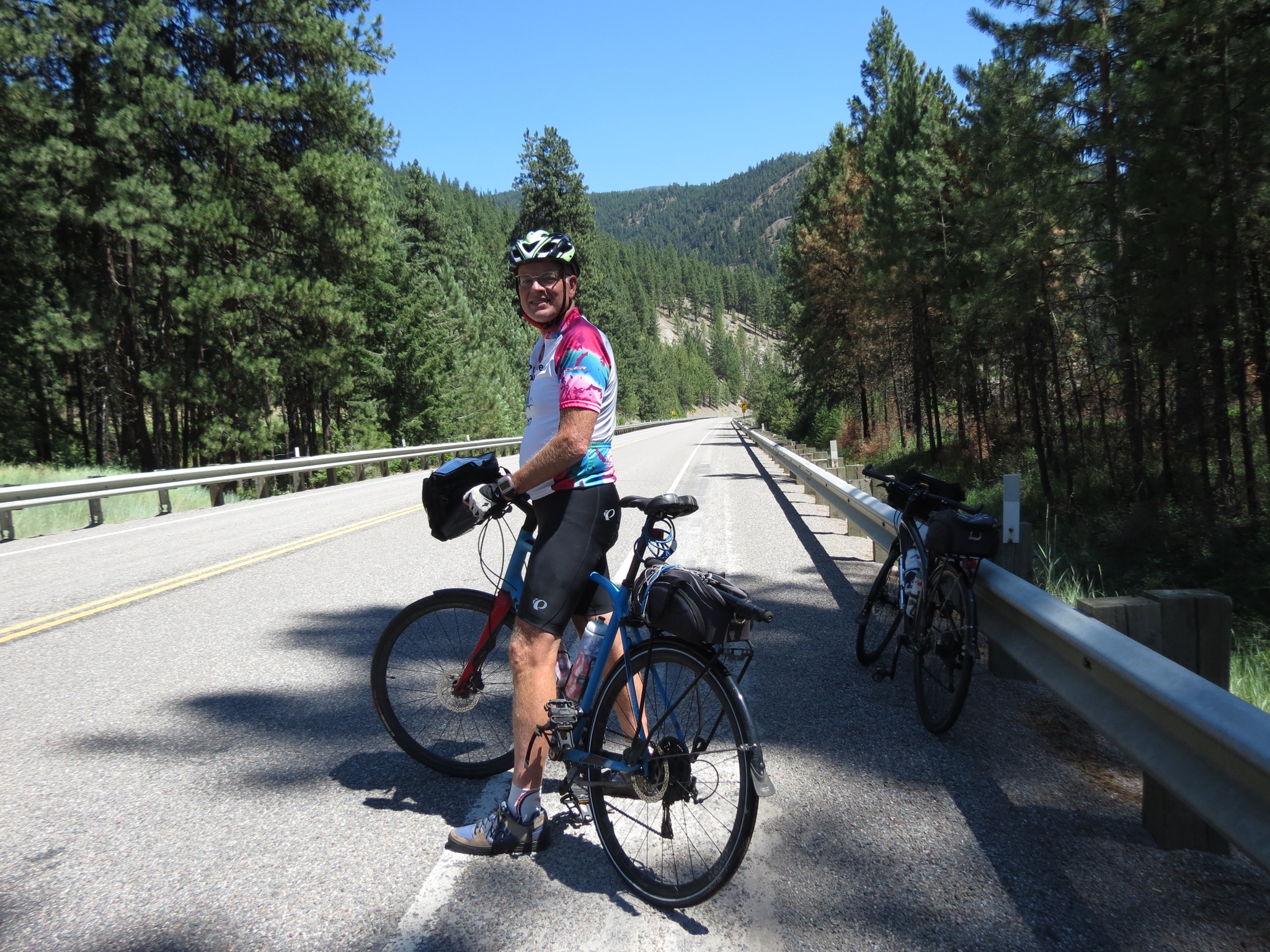 Despite the traffic, the area is much as we expected – largely unpopulated and abounding in natural beauty. This is wilderness at its best. Towns are few and far between. In fact, our daily distances are entirely dictated by their location, generally 50-60 miles apart. In between, there is very little. We have to plan our food and water needs carefully, as some days there is not even a convenience store en route. My infamous bagels have come in handy now and then. And Rich is proud of his foresight to carry four water bottles this trip.