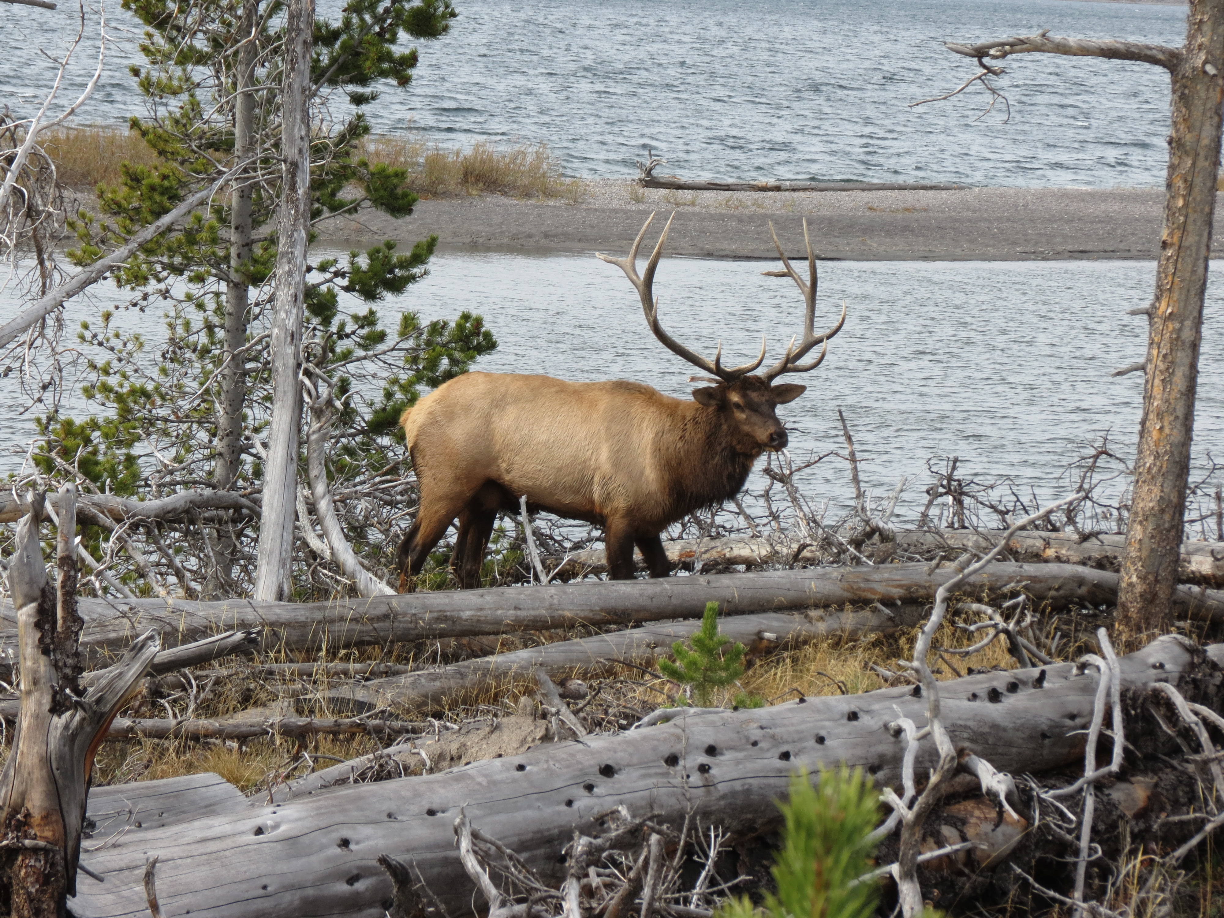 A visit to Yellowstone is synonymous with wildlife, and we saw our share of that as well. Bison and elk were ubiquitous throughout the park. I heard elk bugling in the woods for the first time. Then it became commonplace, as it was rut season. One evening, we were delayed getting to dinner due to a placid elk crossing our path. A “wildlife jam” alerted us to the presence of two grizzly bears tearing into something tasty on the roadside. We chose not to venture close enough to get a good picture of that scene.