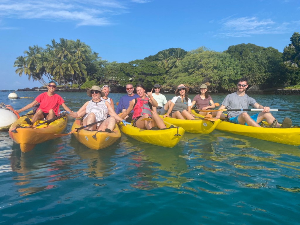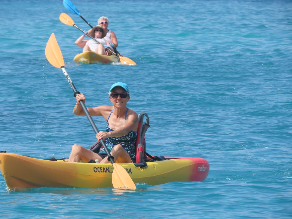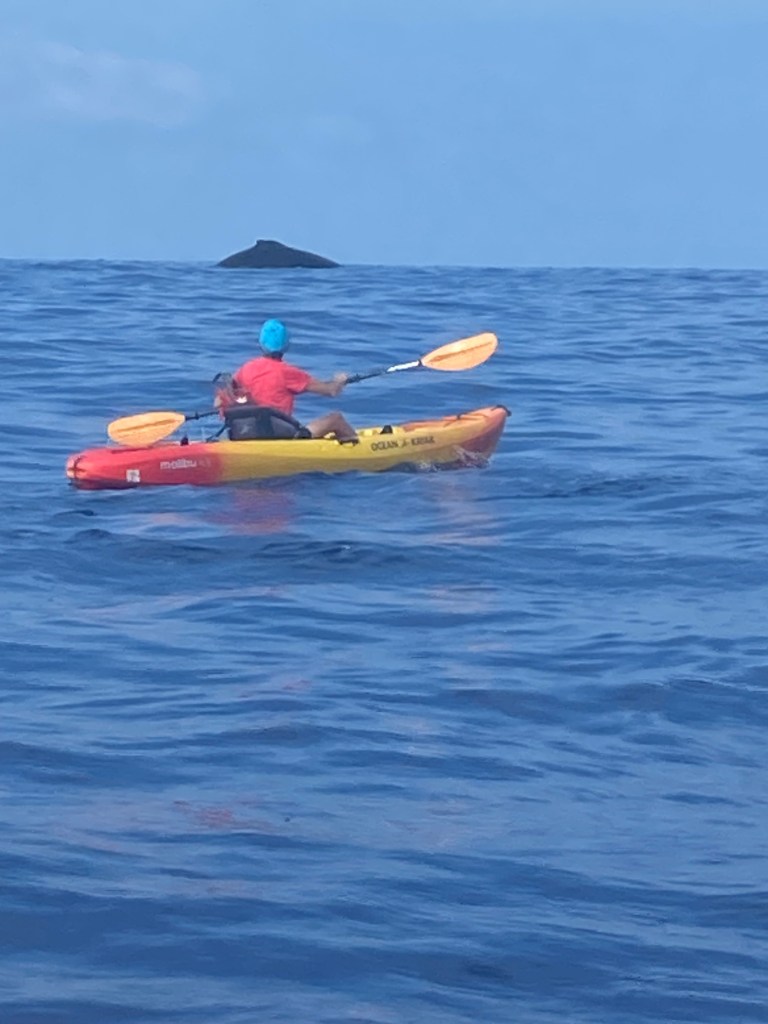 The day dawned sunny and I tried to convince myself the ocean was a bit calmer. Rich delivered me to the dock to meet my tour at 9:00am, and I took heart in the variety of fitness levels of the eight other participants. If they can do it, I can, I repeated. Our guide Jasmine oozed confidence and experience along with her associate Lila, as they gave us instructions for getting in the water and launching our kayaks. It was a stroke of luck that I was the odd person out, and given a single kayak to pilot – much to my glee.