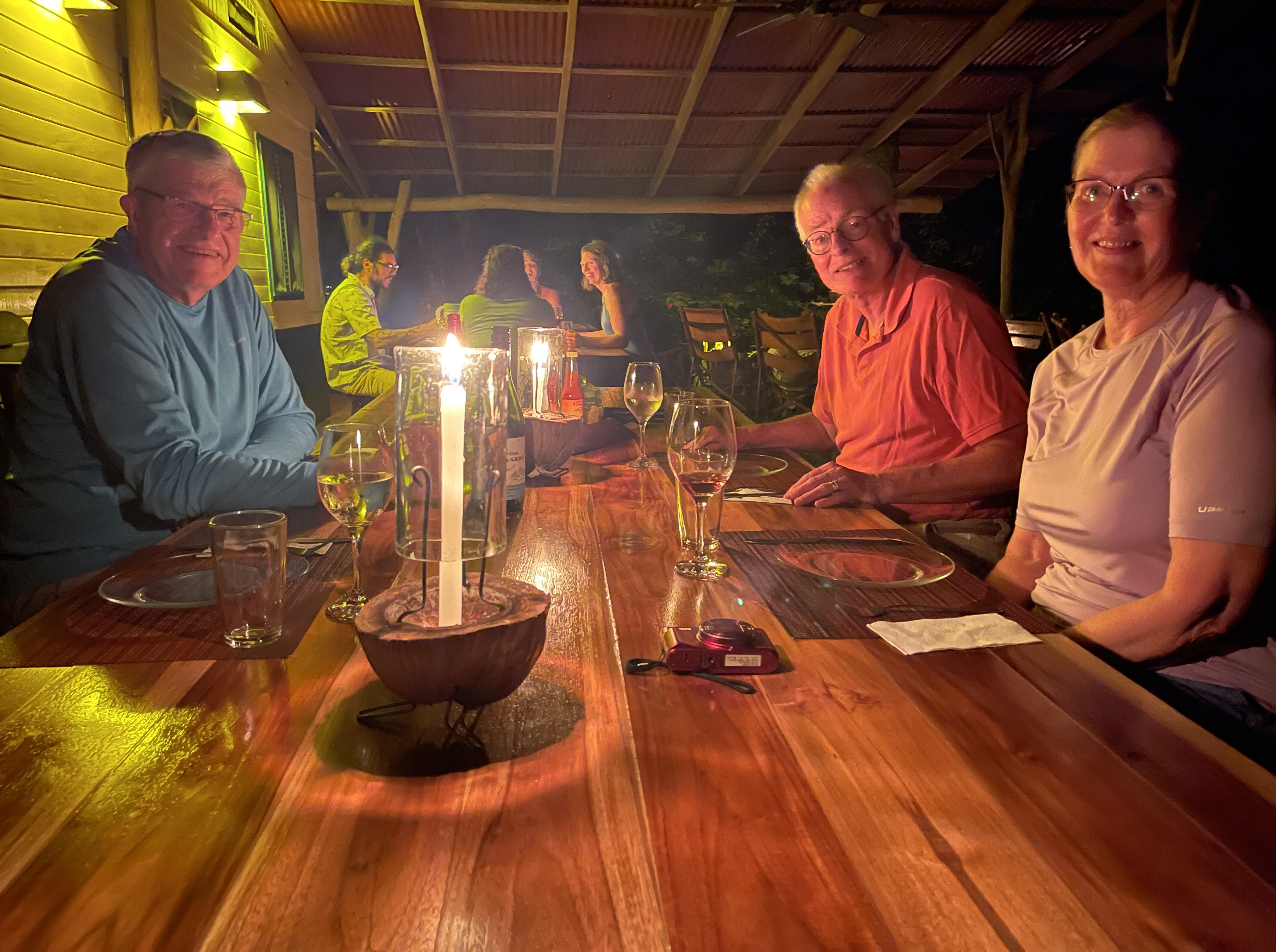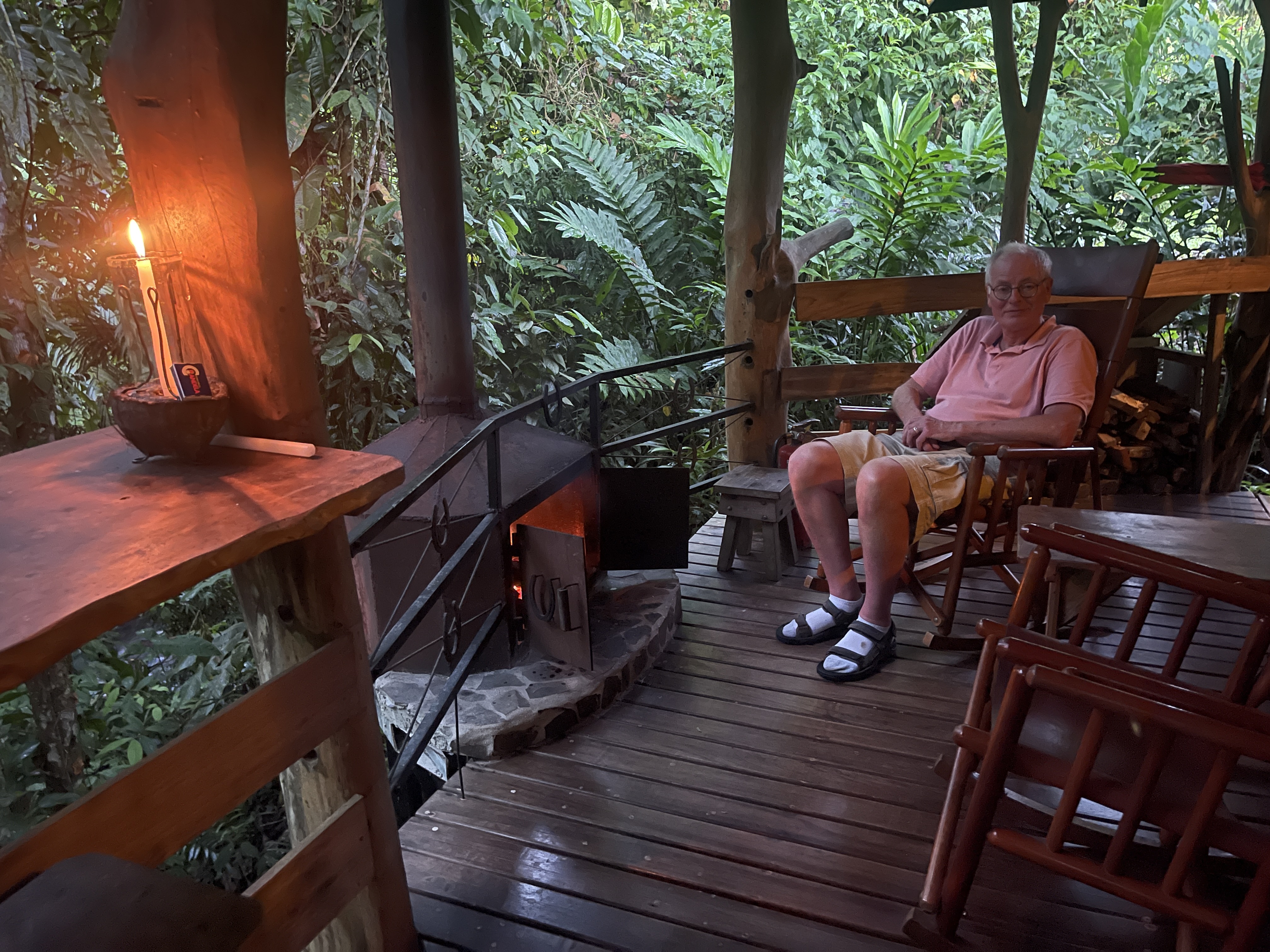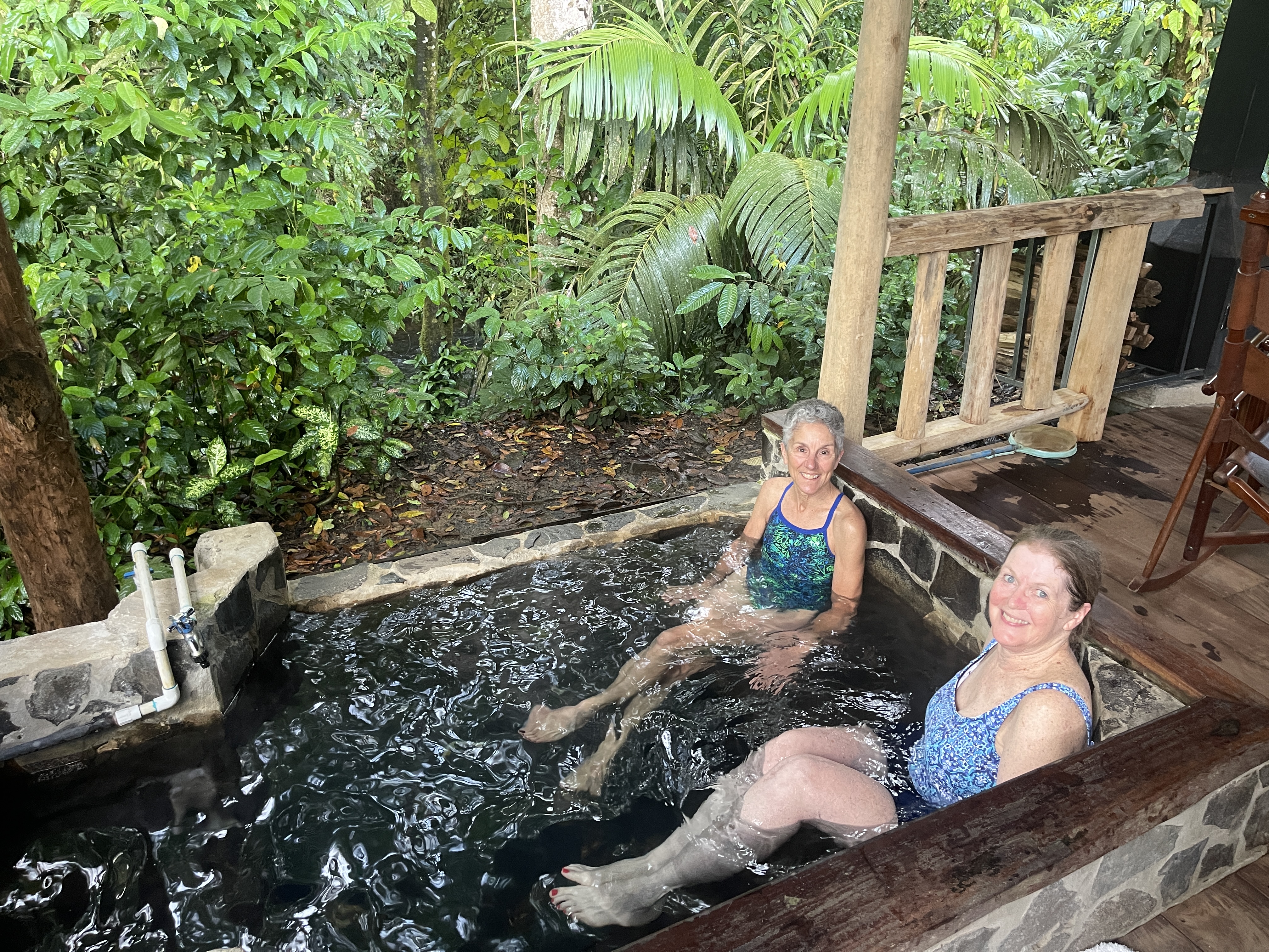 During the heat of the afternoon, it was easy to while away the hours on the deck, reading and journaling to the sounds of the rushing river while Rich worked on his latest set of photos. Jon and Beth invited us over to enjoy their hot tub, and while it seemed incongruous in this tropical climate, it actually felt good!