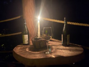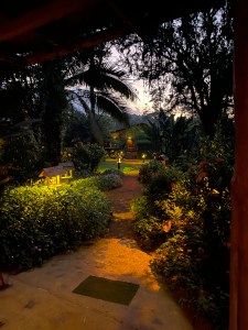 Evenings were particularly magical. Before leaving for dinner, a young woman silently slipped onto our deck and lit the candles on the railing and started a fire in the wood fireplace. We learned this would be a nightly occurrence, and came to appreciate the glow of the fire well into each evening. At the same time, candles and lanterns were lit throughout the grounds, throwing glimmering light onto the paths, just enough to illuminate our way.