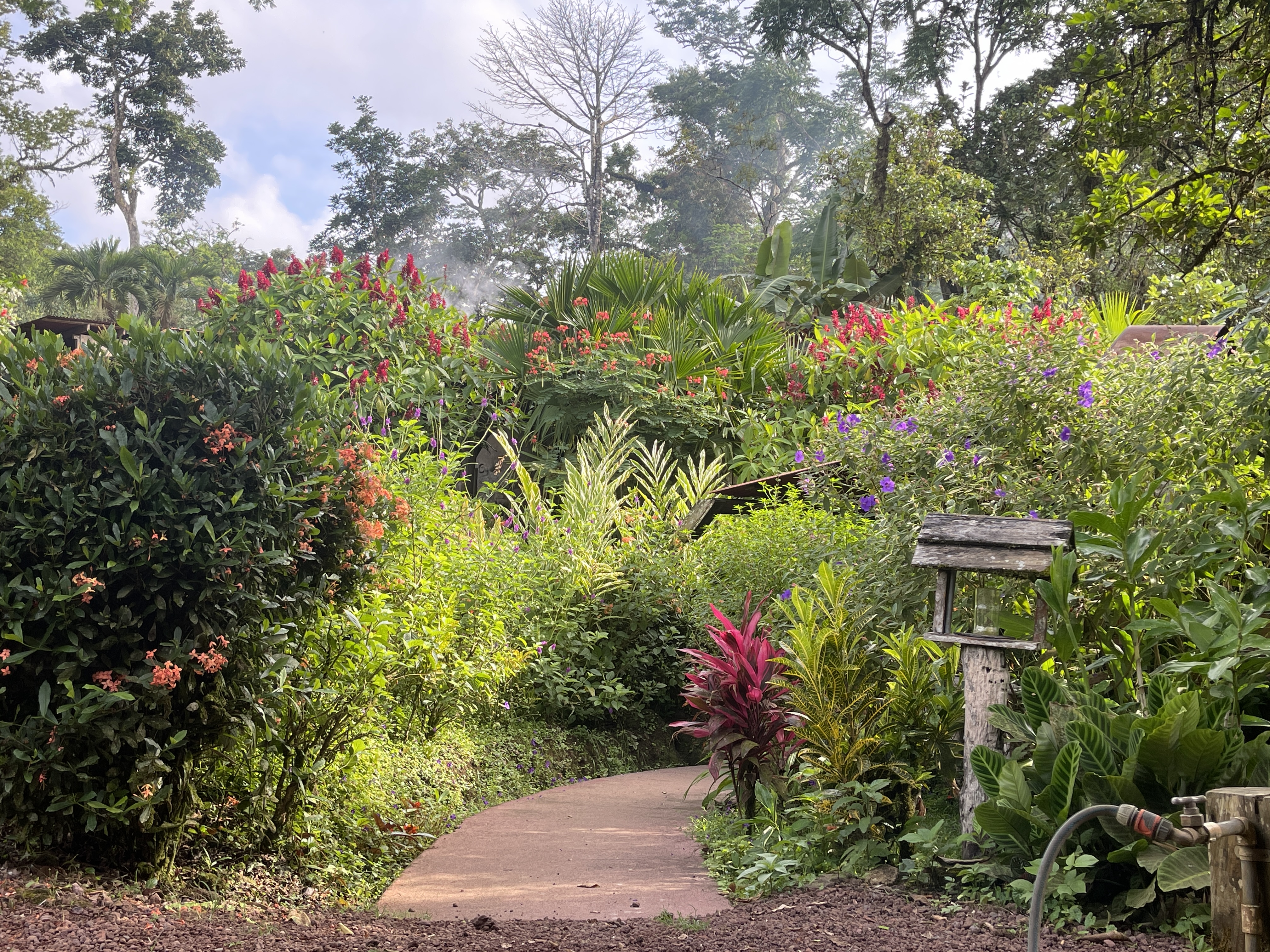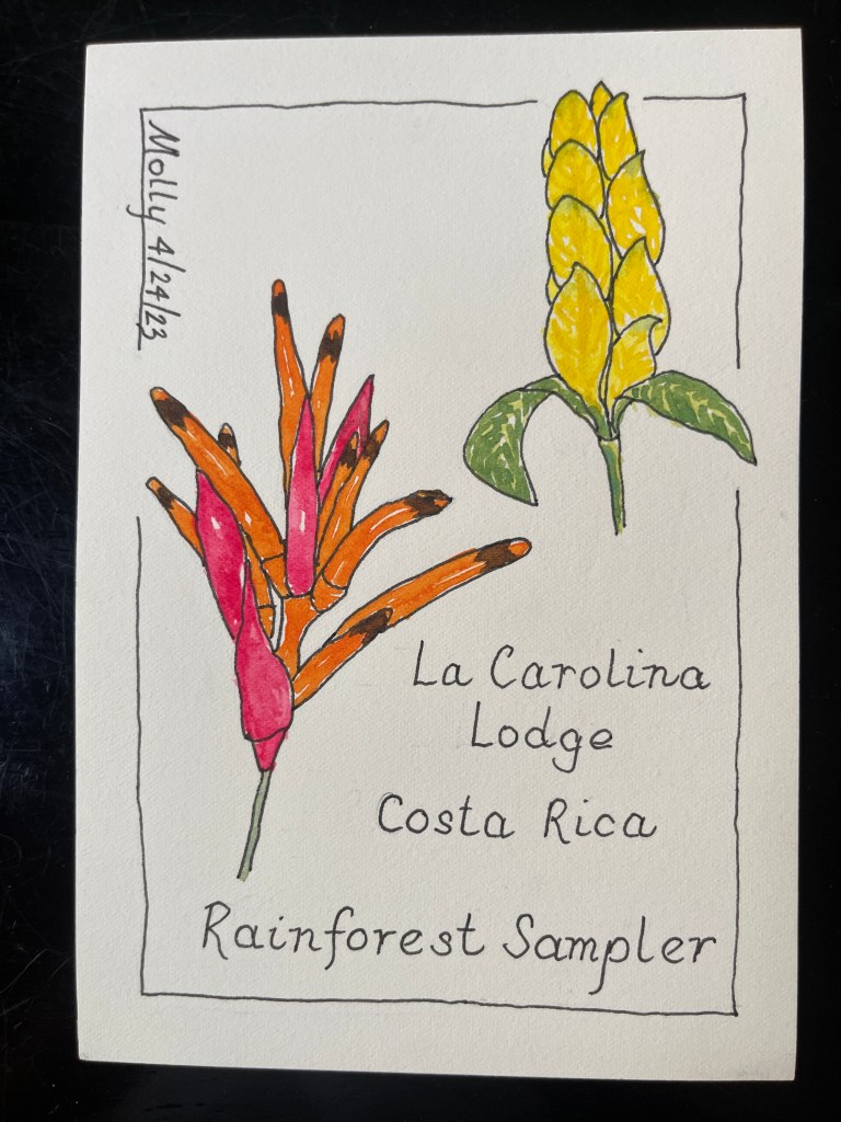 The abundance of tropical flowers ignited my desire to do some sketching and painting. It was too hot to sit and draw in the sunlight, so I took photos and retreated to the deck to ply my nascent craft. When progress waned, the swimming hole was the perfect place to refresh my spirit. Another day Beth and I soaked in the streamside wood-fired hot tub.