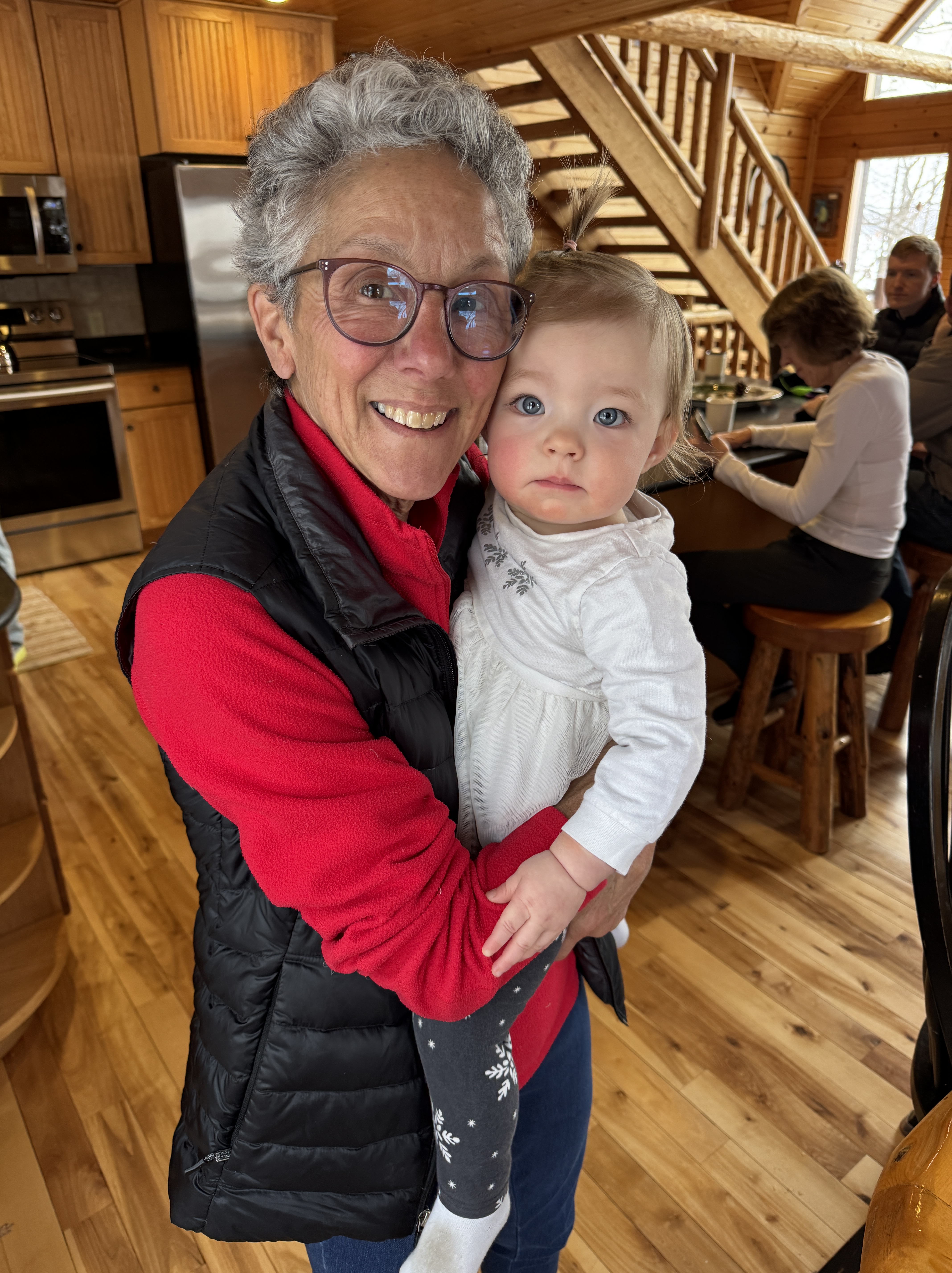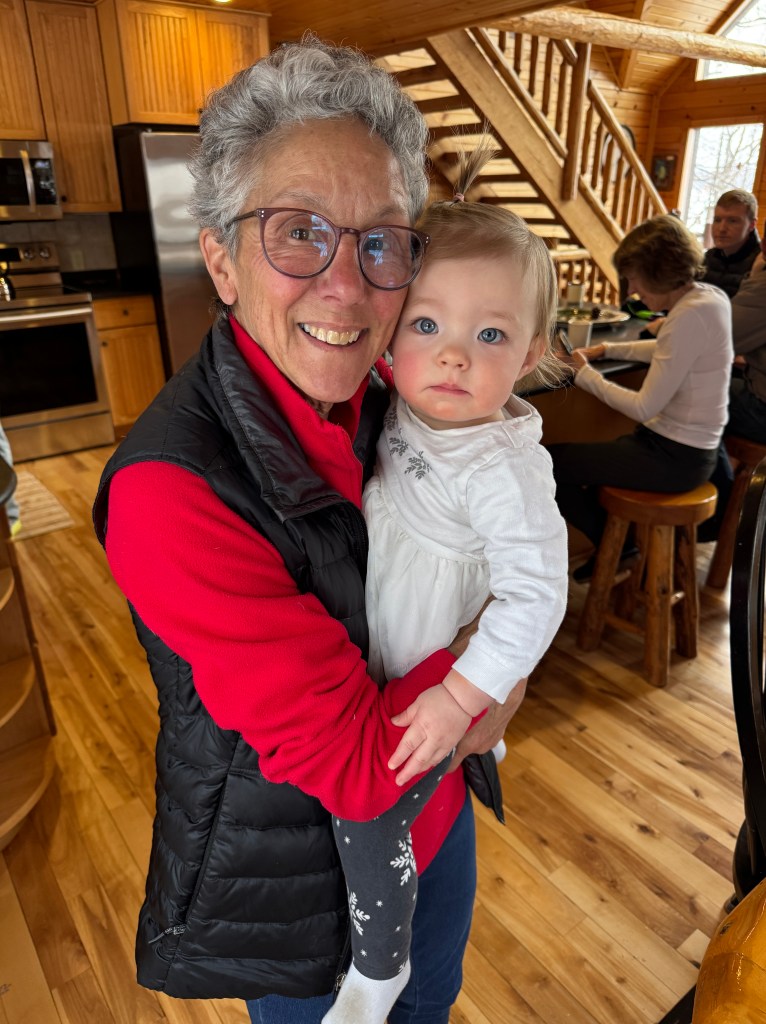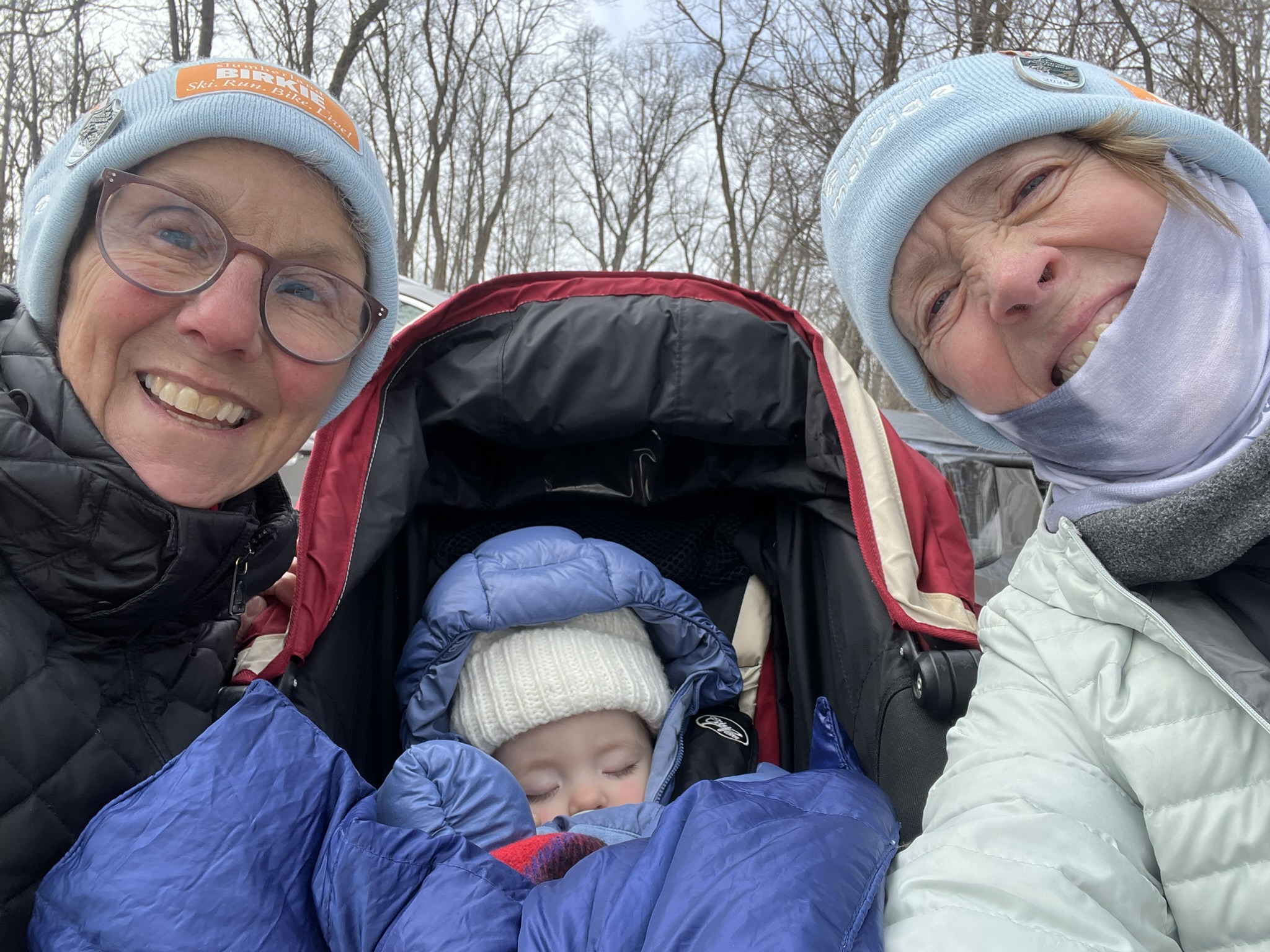 As the Warriors, they were required to appear at various events from Wednesday through Saturday. Katie’s mom, Betsy, and I were thrilled to be able to stay for the duration at the “ski cabin” where Erik and fellow skiers have gathered for years of Birkie races. We tagged along at the events, and formed a double-grandma team to watch Saige. For our efforts, we were gifted Birkie Volunteer hats – we earned them gladly!