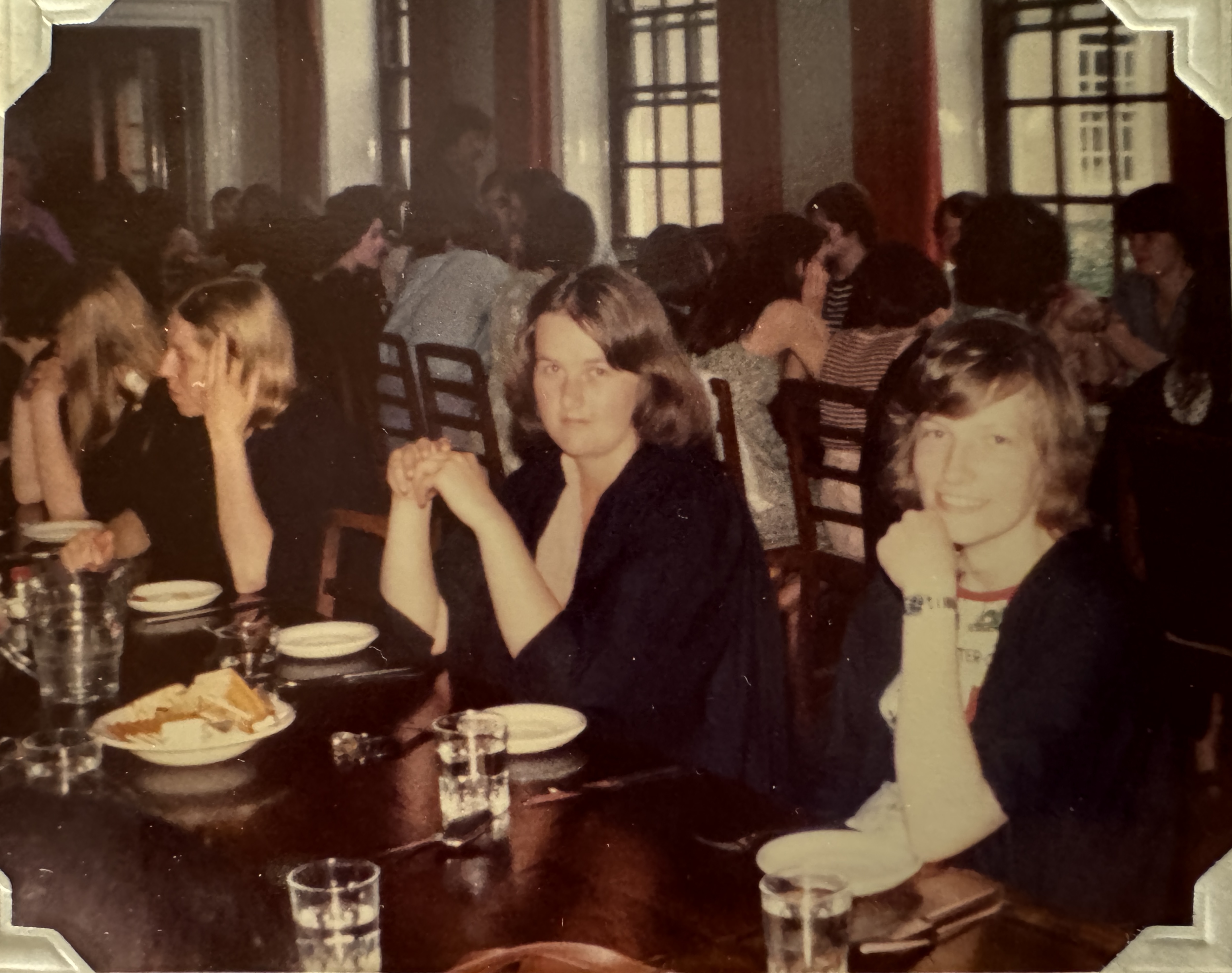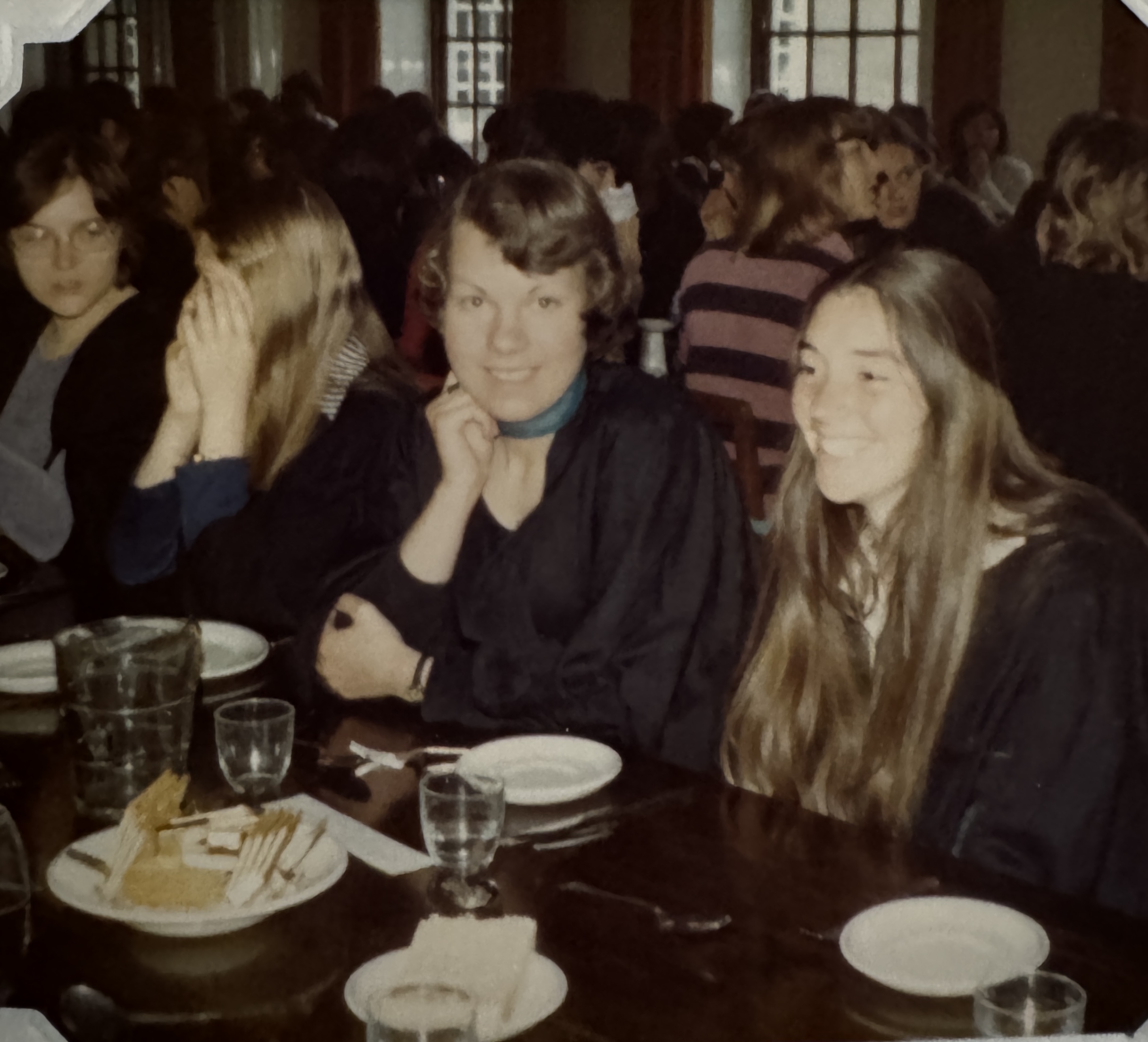 One custom I did capture were the “formal meals” we had in college several times a week. We wore our academic gowns and awaited the top table to sit before starting to eat. I loved the unique sense of history and culture, and relished my growing group of friends to sit with for these meals. Jo and Mary are in the center of these photos