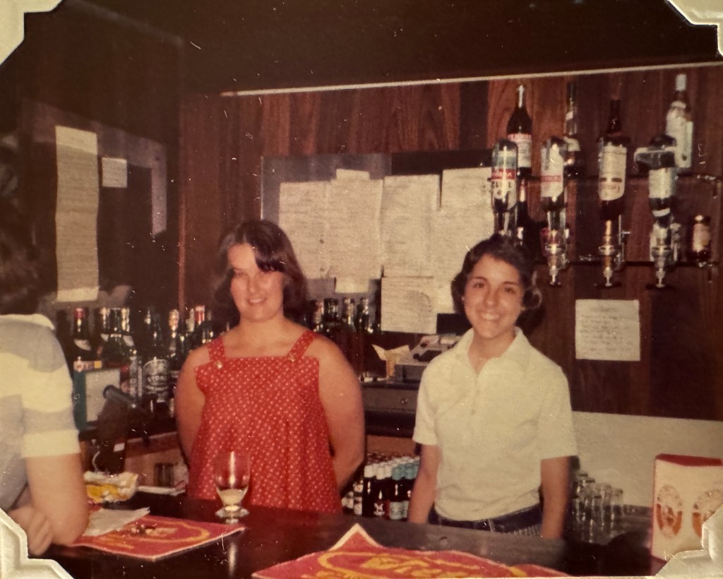 Among the amenities of our college was its bar in the basement – common to all the colleges. Open limited hours or for parties, students volunteered to be bar tenders. Somehow Jo convinced me to tend bar with her! I’m sure I let Jo handle the more complicated drinks.