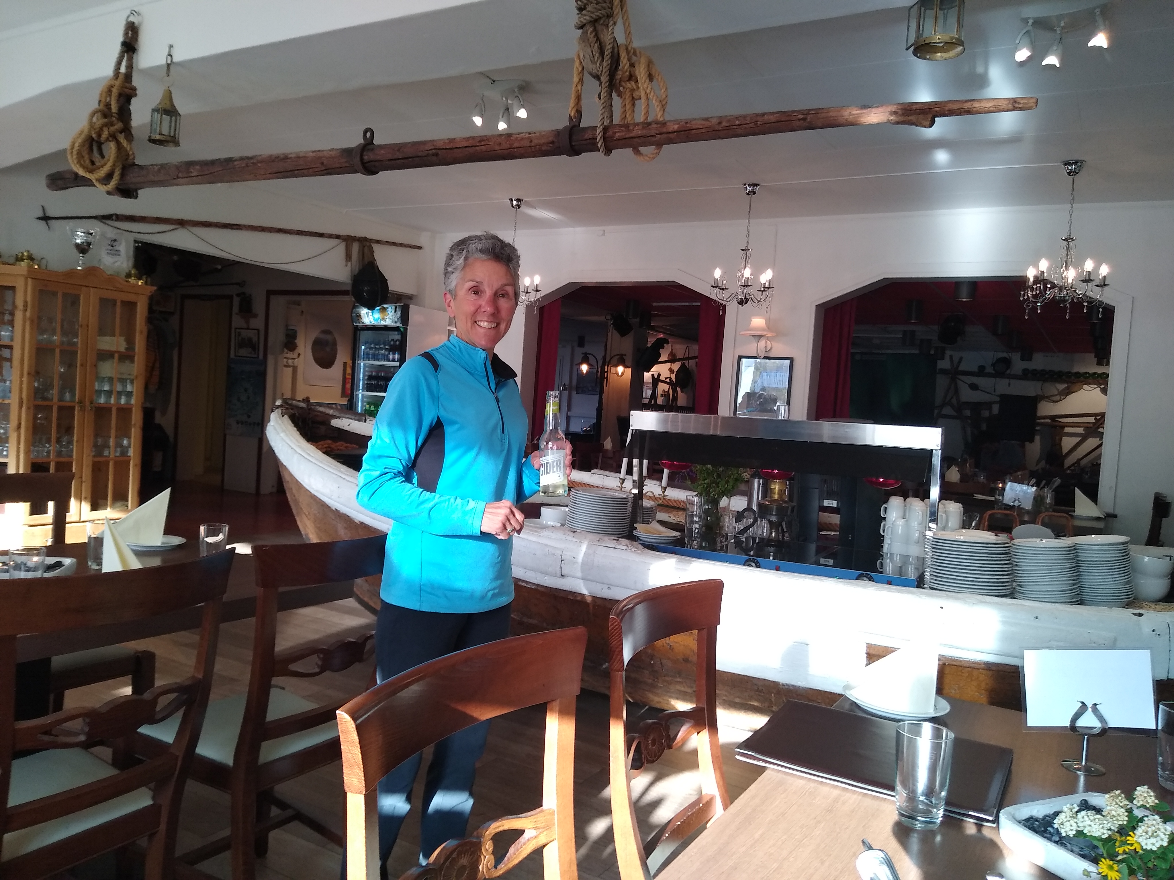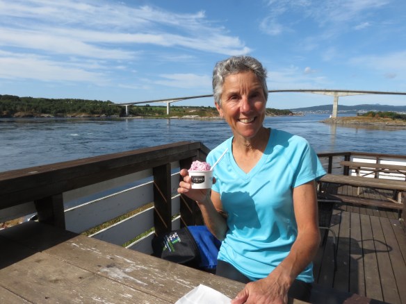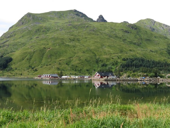 Turning into the drive for the Kjellingstaum Fjordcamp I admit to having my doubts. It was dominated by campers seemingly helter skelter on the unkempt grounds, with a few cabins that had seen better days. The elderly proprietor showed us to a small cabin with bunk beds, a tiny table and chairs and kitchenette – more time worn than quaint. The toilets and shower were located in a building just down the way, he informed us. And the restaurant we thought they had? No, the only food option was at the gas station 5 kilometers back.