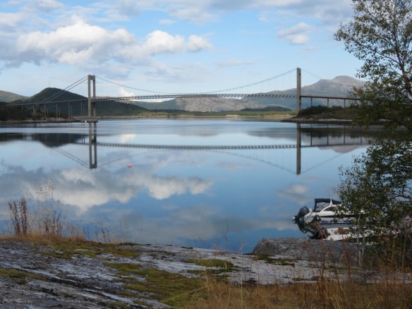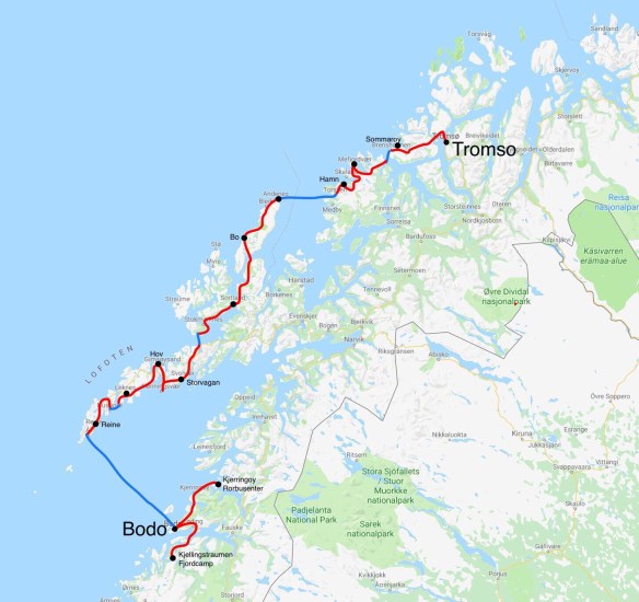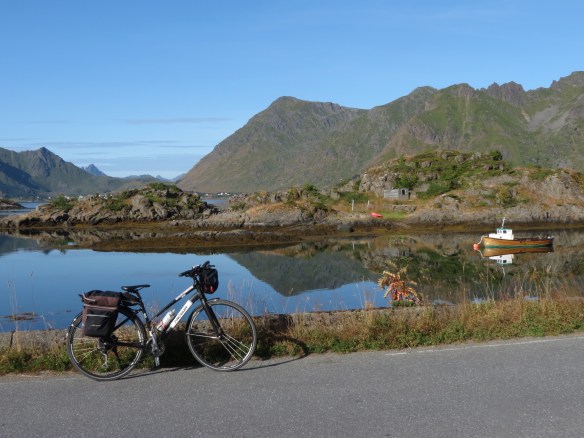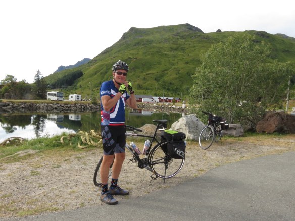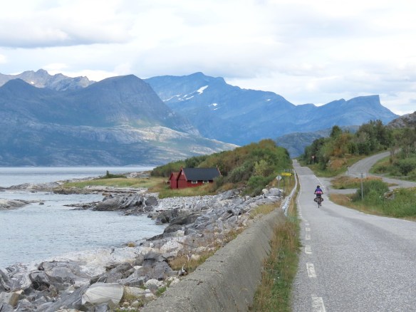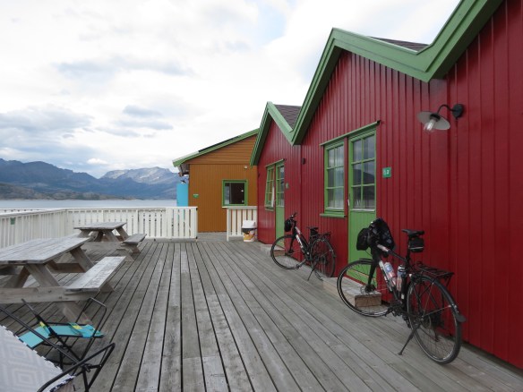 Following our 14 days of touring the Arctic Islands with the Discover Norway Tour we planned four more days of cycling on our own on the mainland. This was more the style of touring we were used to. No more swanky lodgings. No more 3-course dinners. This involved two out-and-back trips to accommodations Rich scouted months ago via the Internet. Roads that he scoped on Google Maps.