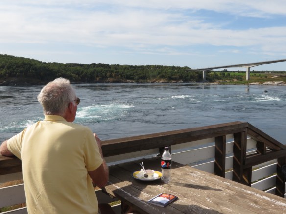 We were eager to see the Saltstraumen Maelstrom, which was right on our way. It is acclaimed to be the world’s strongest tidal current. Four times a day when the tide changes, the incoming and outgoing tides battle and create a confluence of rough water and swirling whirlpools. It is caused by water rushing through the narrow opening between two large fjords.