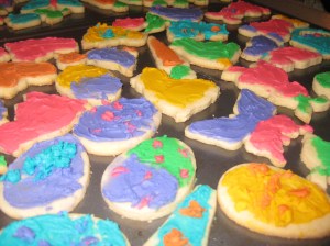 pulled out my sewing machine and brushed up my embroidery skills to make personalized aprons for the kids. They both love to bake, as I do, and I couldn’t wait to surprise them with the matching aprons. And of course I had several baking projects lined up. They are eager helpers, and willingly donned their new aprons. But there is no question that licking the bowl was the best part. Who can argue with that?