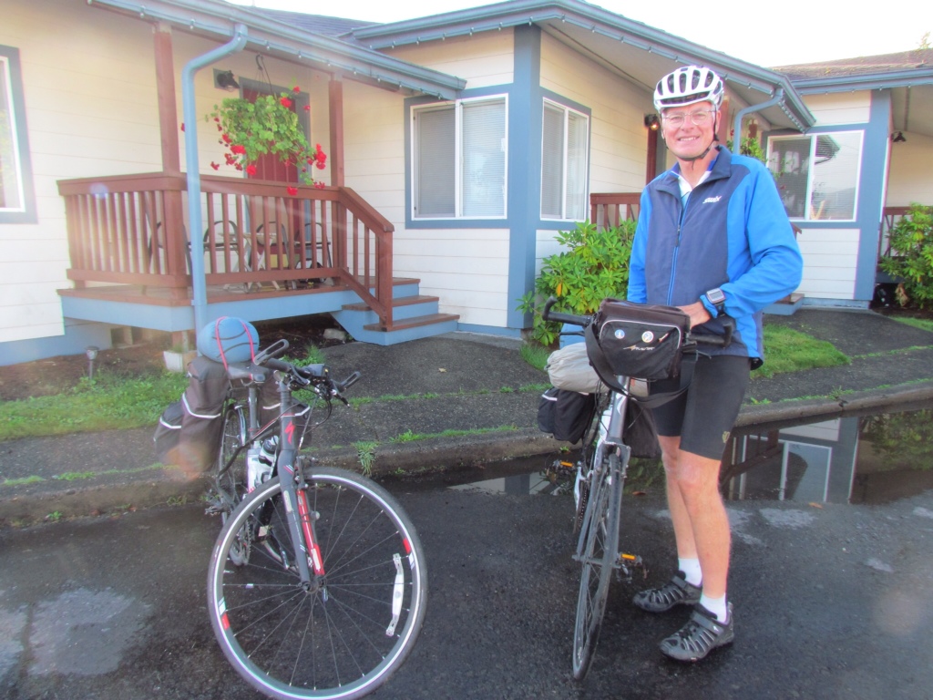My plan is to combine a favorite 50-mile cycle route with friendship, coffee and art. The first leg of my journey is my inland route to Two Harbors. With each turn of my pedals, the air gets wetter and my visibility shrinks. My glasses further obscure my view by collecting mist and drips from my helmet. I eventually abandon them, figuring a bit of blur is preferable to near blindness. But it’s calm, not raining and the temperature is very comfortable for cycling. And I love the quiet of an early morning ride.