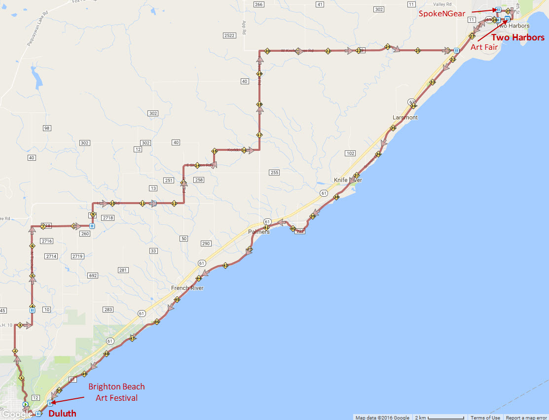 My first destination is a new combination cyclery/coffee shop, SpokeNGear. Joan is already there waiting for me and within moments, I am convinced that the advance publicity doesn’t do it justice. The modern décor of the coffee shop is uncluttered and inviting, flanked by soaring windows overlooking the woodlands. Anyplace with good scones is a winner in my book, and I can truly taste the lavender in my raspberry and lavender scone that accompanies my latte. An hour passes quickly as we visit in the welcoming space. Before leaving, a staff member from the bike shop graciously tightens some bolts on my bike that the Northland’s bumpy roads had worked loose.