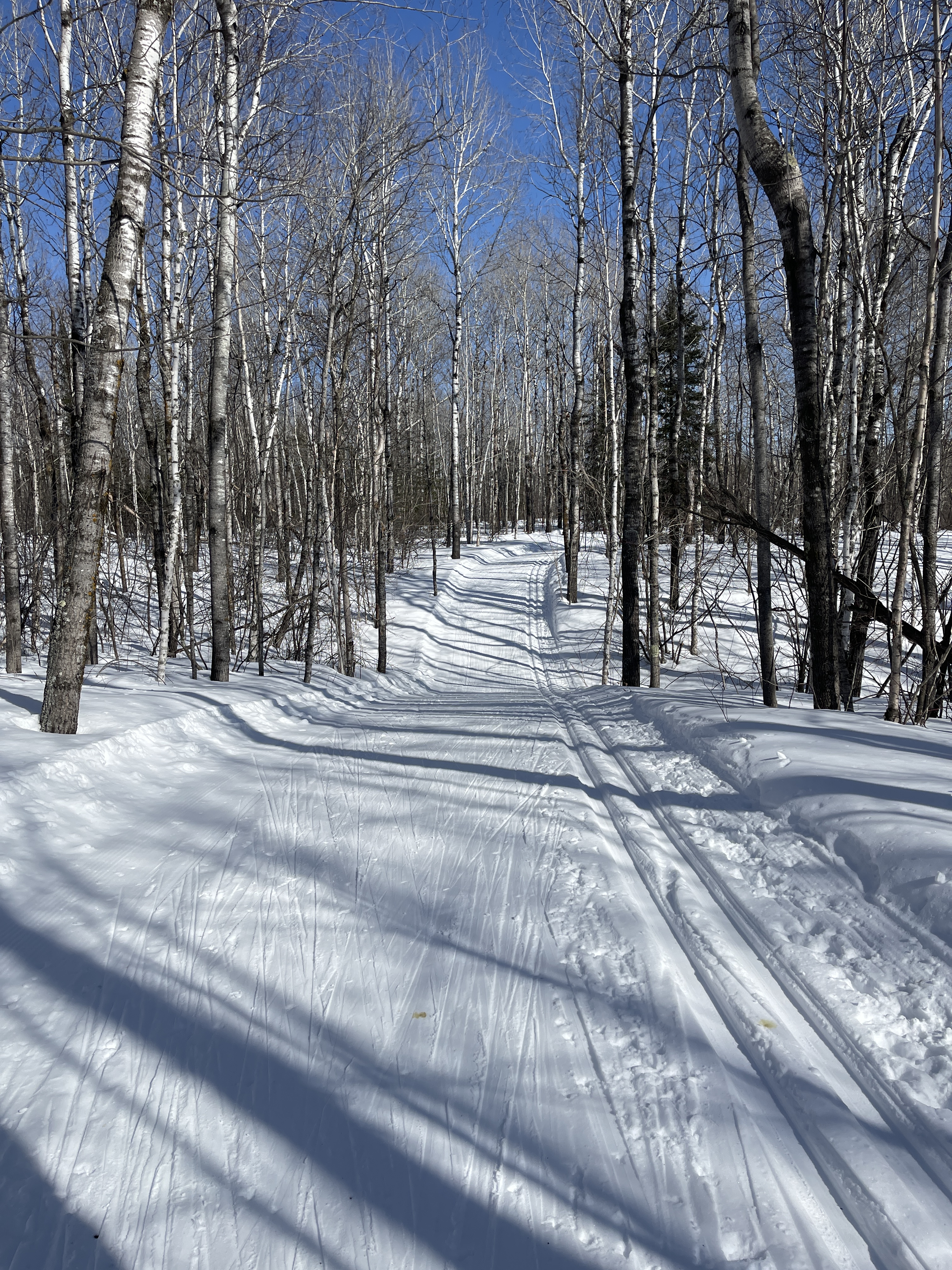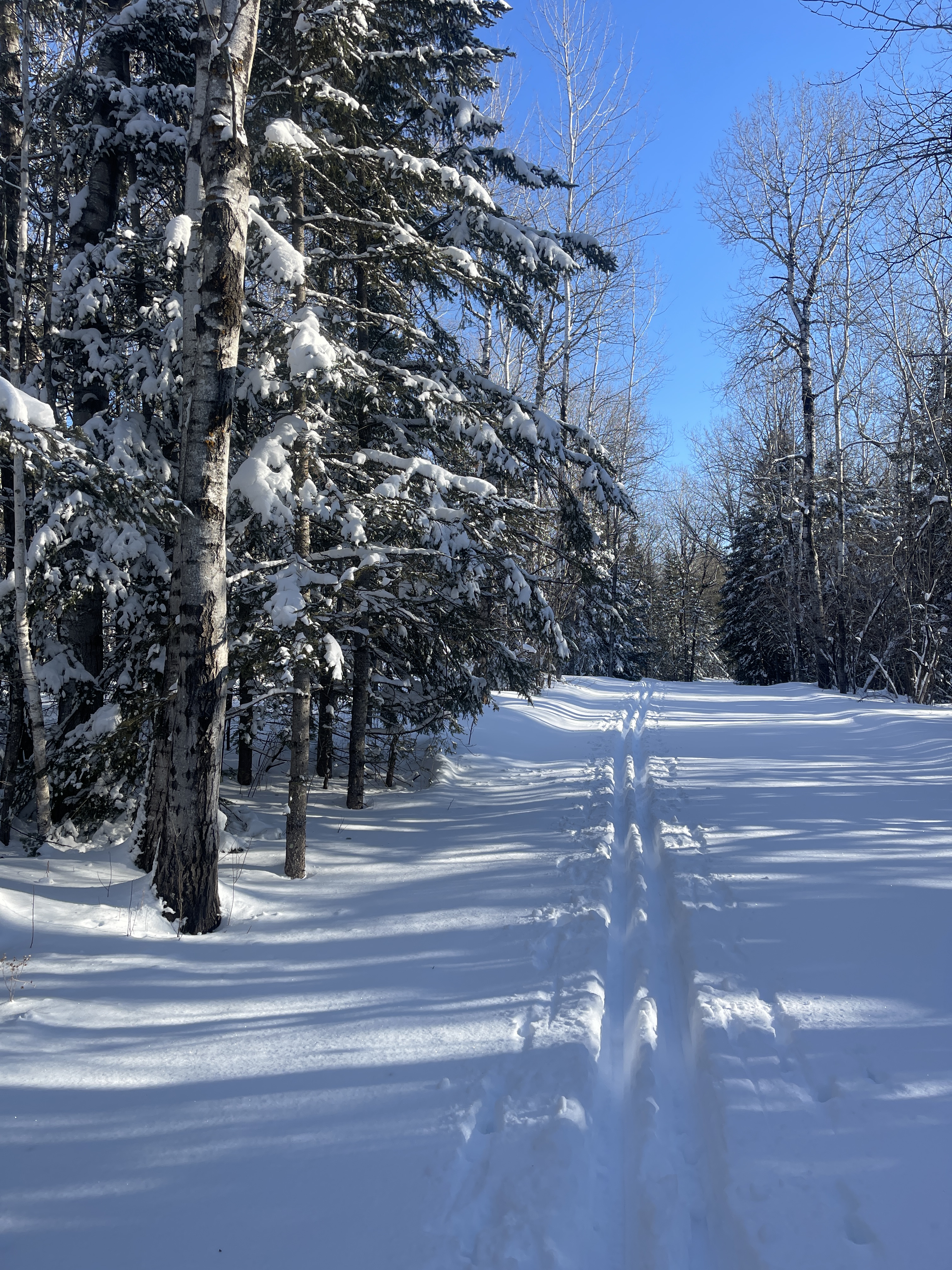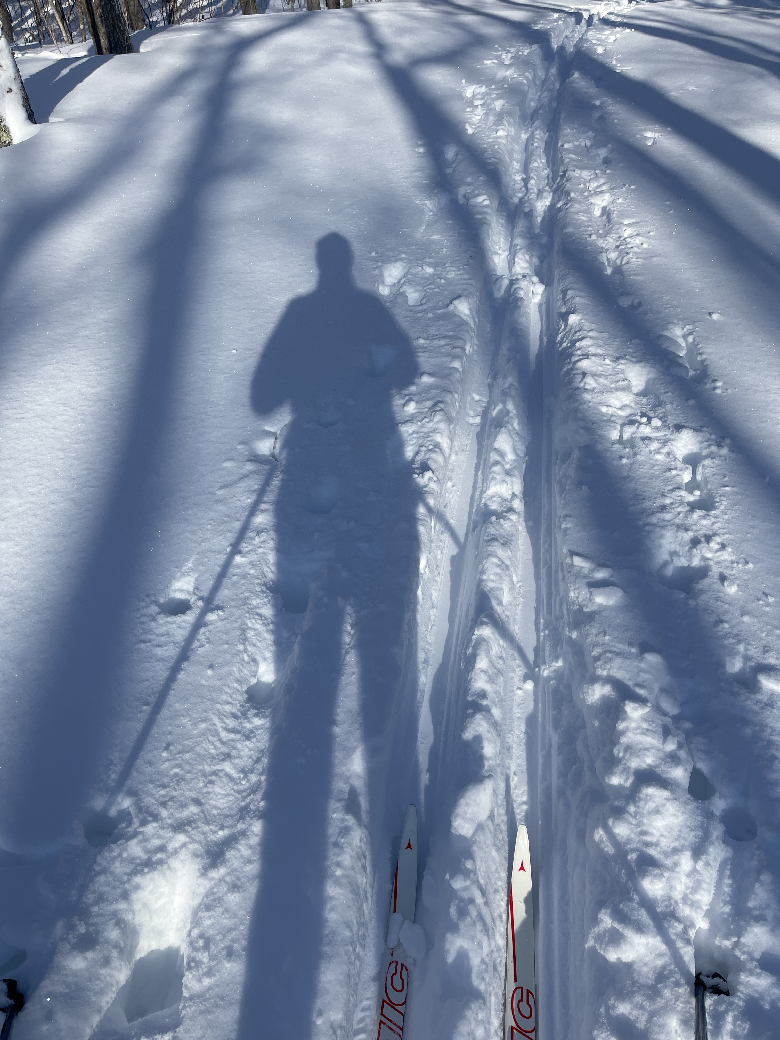 It certainly helped that conditions were absolutely perfect. The trails were freshly groomed, and had hardly been skied. Except for the few folks who started around the same time and flew off into the distance, I had the trail system to myself. The sun came out, the sky turned that brilliant blue, and the trails were as mild as I remembered. When I came to the intersection at the far end of the first loop, I eagerly continued on to the next. And then the next after that. It felt so good I didn’t want to stop. I admit to more butterflies on the first downhill, and lost my technique trying to ski up the inclines, but that paled in comparison to the joy of being out in the snowy wilderness. Taking in the glories of winter.