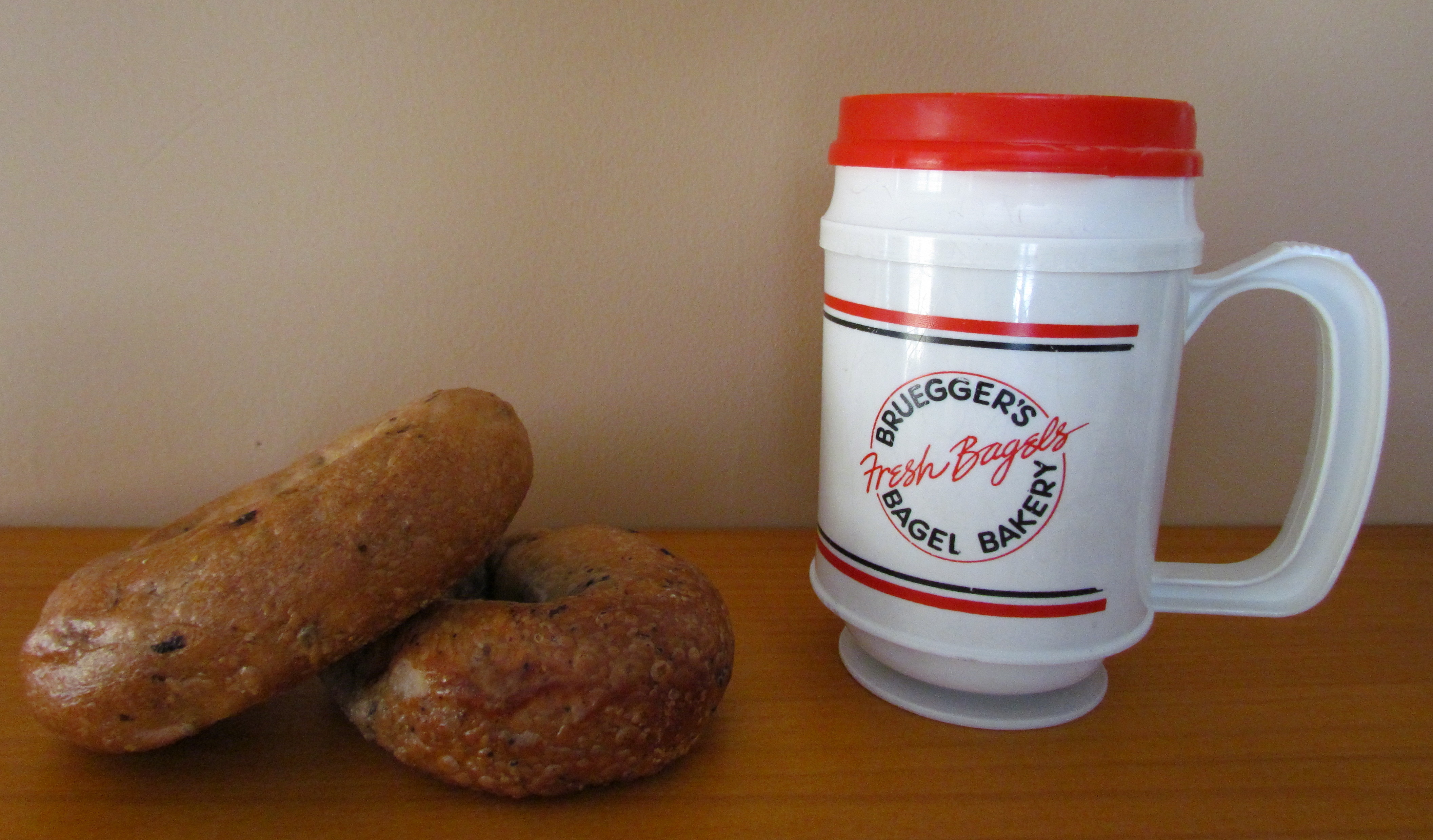 IMG_0300 timmedAs time went on and school schedules changed, the other kids were able to join us.  Even when I went back to work full-time, we still managed to get to Brueggers.  I loved our special time together in the early morning, over a simple breakfast of bagels and cream cheese.  The staff knew us, and I invested in a Brueggers mug to get “refill” discounts on my coffee.  We were regulars.