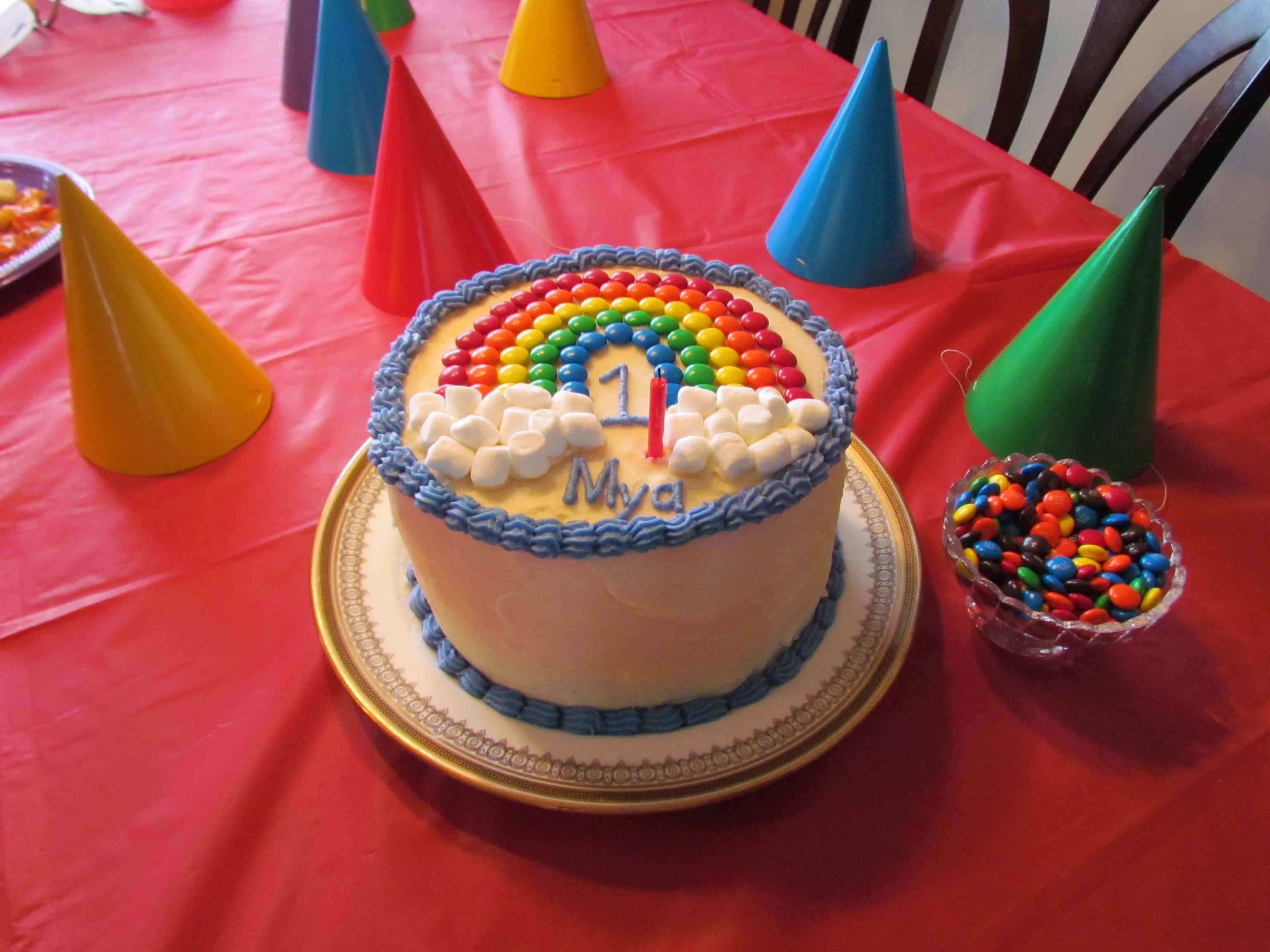IMG_9659Mya, the birthday girl, may not have entirely appreciated the aesthetics, but she did enjoy the sweet flavors. And she wore it well.
