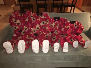 And there was one more memory to repeat. My summer Grammy Jammies made a second appearance, including a little onesie for Saige! They did not disappoint, and caused a great ruckus upon distribution. It was great fun to see them appear throughout the week.