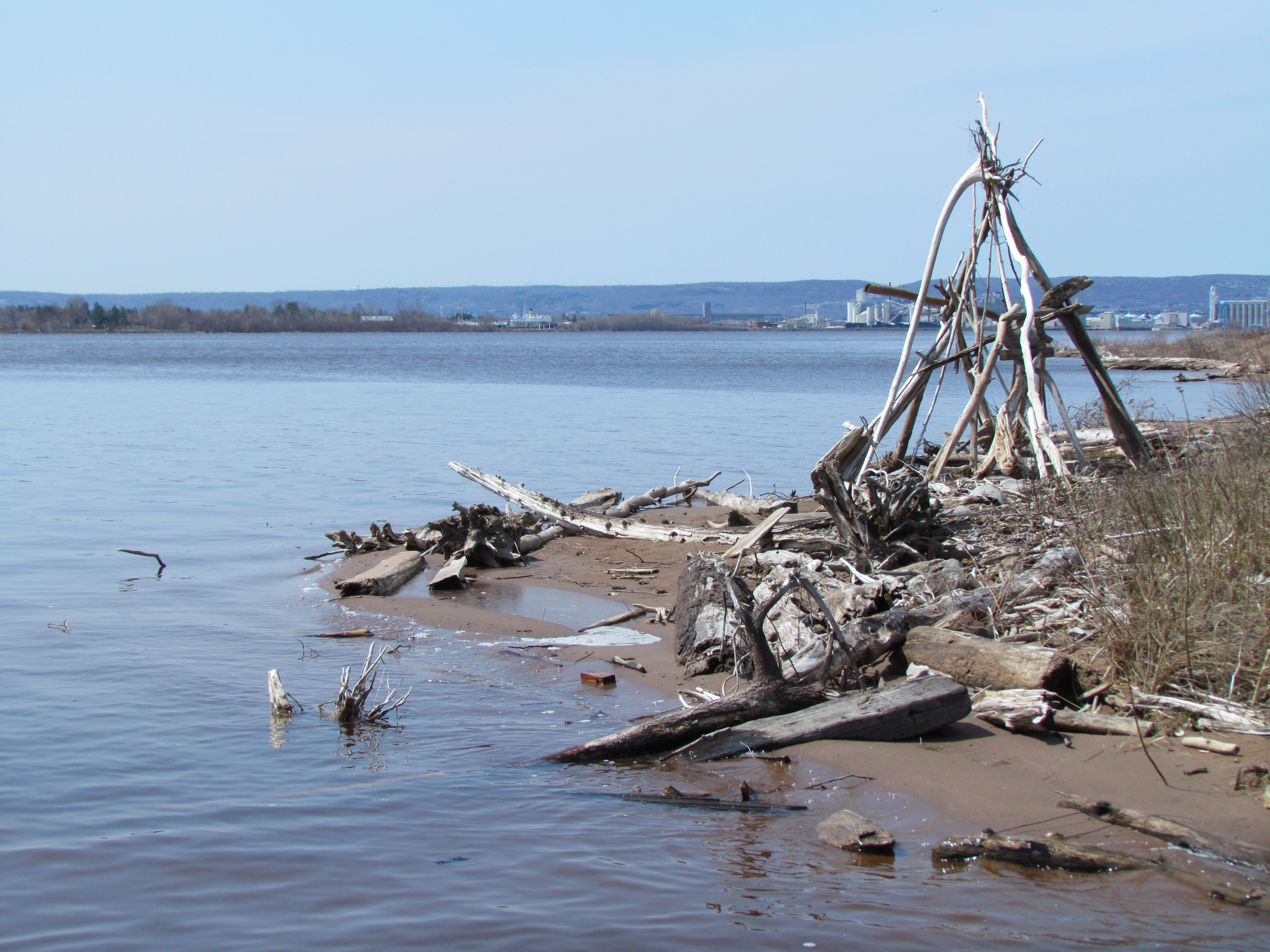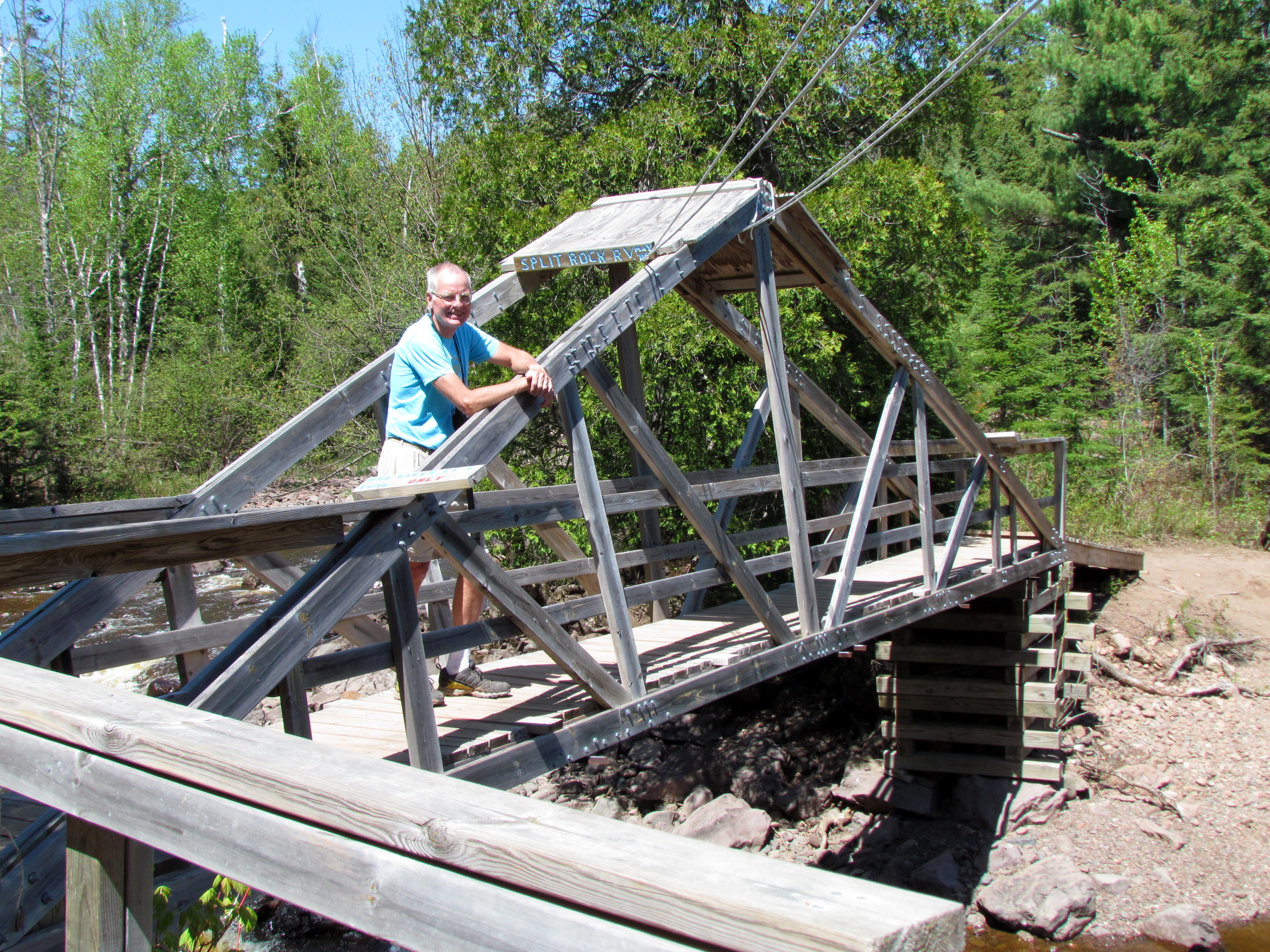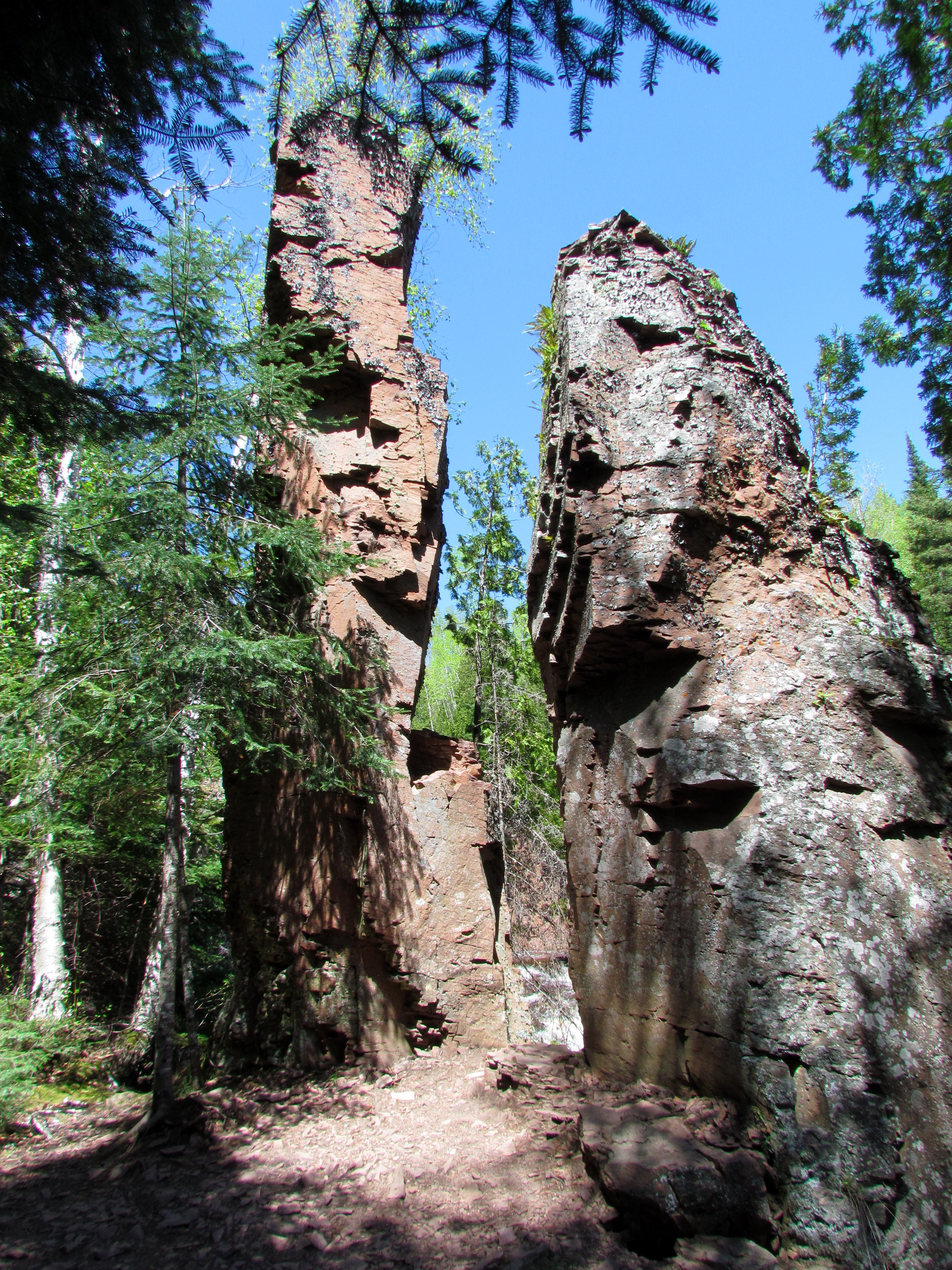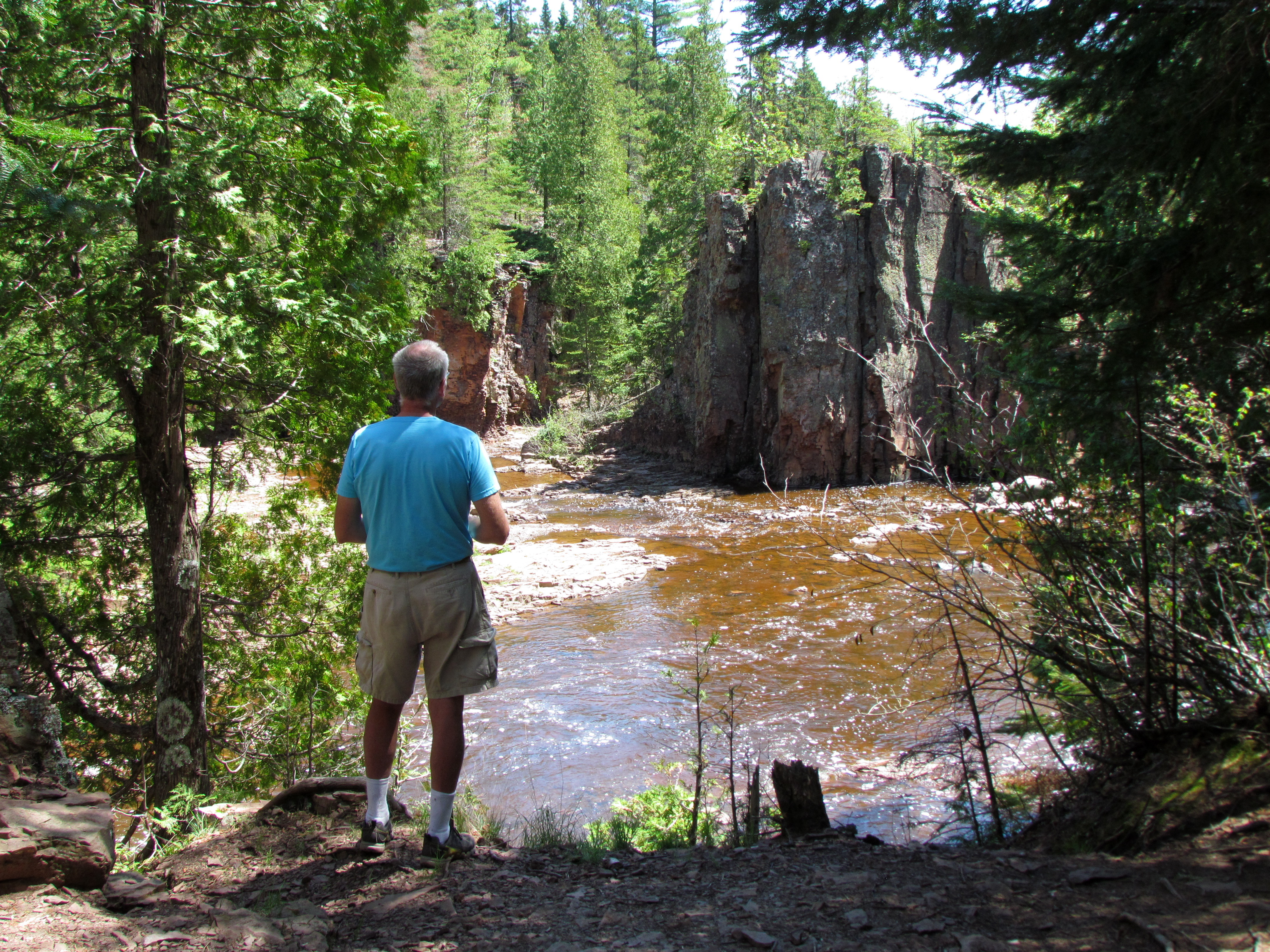 Hiking between the shoreline and the falls, I decided it was a dual sound track park. Next to Lake Superior, the rush of the wind and the pounding of the waves filled my ears. It was a familiar noise I could feel as well as hear. Both sensations retreated as I moved away from the lake, soon to be replaced by the roar of the falls. The thunderous din grew as I drew closer to the source, and witnessed the power of the water as it crashed over the rocks. Still swollen by the spring run-off.
