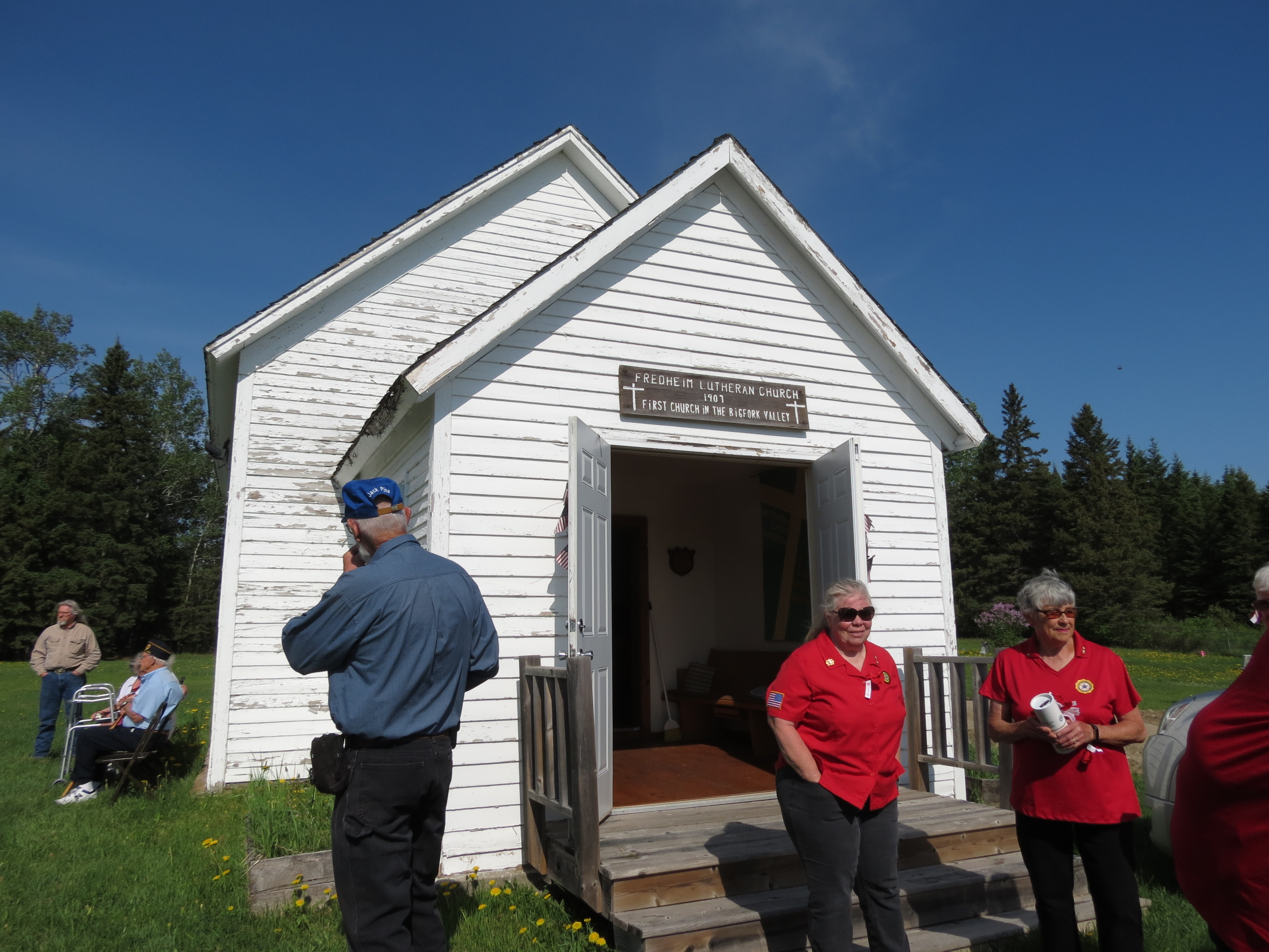 Whittling down the miles back to our car, we spotted a congregation of cars parked up ahead on the quiet farm road. At Fredheim Lutheran Church, American Legion members from Effie along with family and community members were gathered for a Memorial Day service. In the warm summer air and sunshine, we passed by. Then thought, why not? Returning to the site, we parked our bikes and were heartily welcomed by the assembled folk. The 1907 church – the first in the Bigfork Valley – felt like a most appropriate backdrop for this occasion.