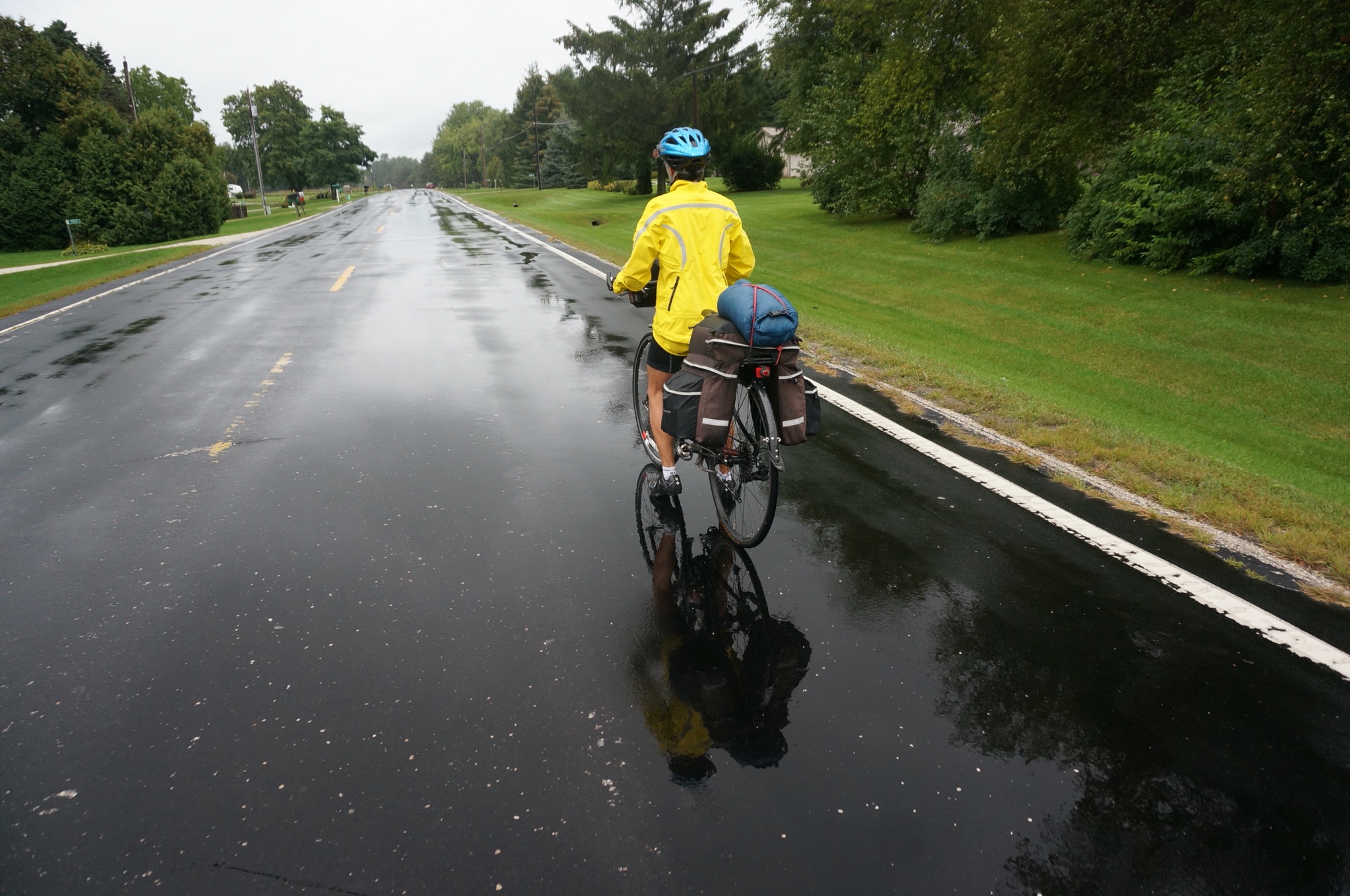 We were grateful to learn that Jim was a very agreeable traveling companion. Despite the dire weather forecasts for morning, we threw caution to the wind and stuck with our plans to camp that night. For our reward, we scored the only campsite in the DH Day National Forest Campgound with a water view! The fact that they had only primitive campsites (outhouses and water faucets, period) was no problem. Our beautifully secluded spot also had beach access. With Jim leading the charge, we were soon swimming off our day’s sweat and rinsing our cycling gear all at once in Lake Michigan! I certainly never expected to swim in the lake on this trip. And had we been on our own, I’m not certain we would have taken the plunge. It’s a good thing that by then there were three.