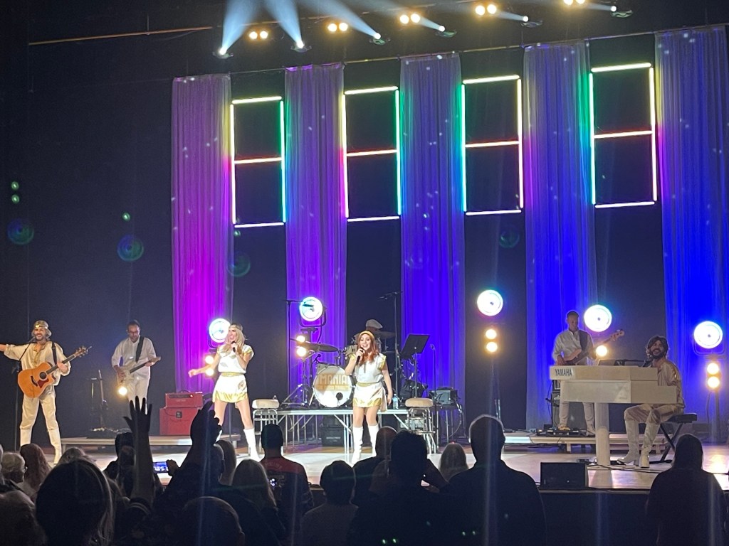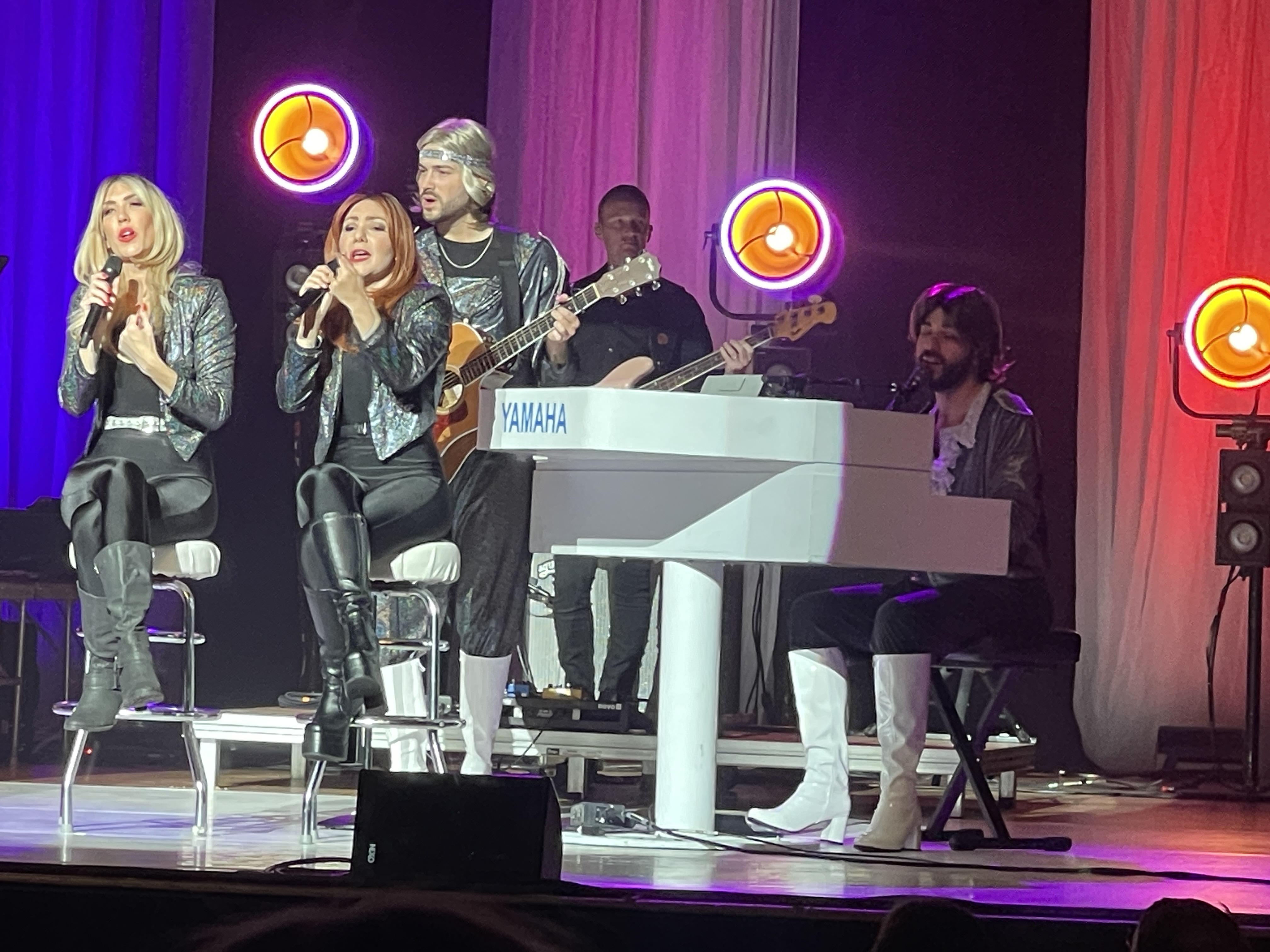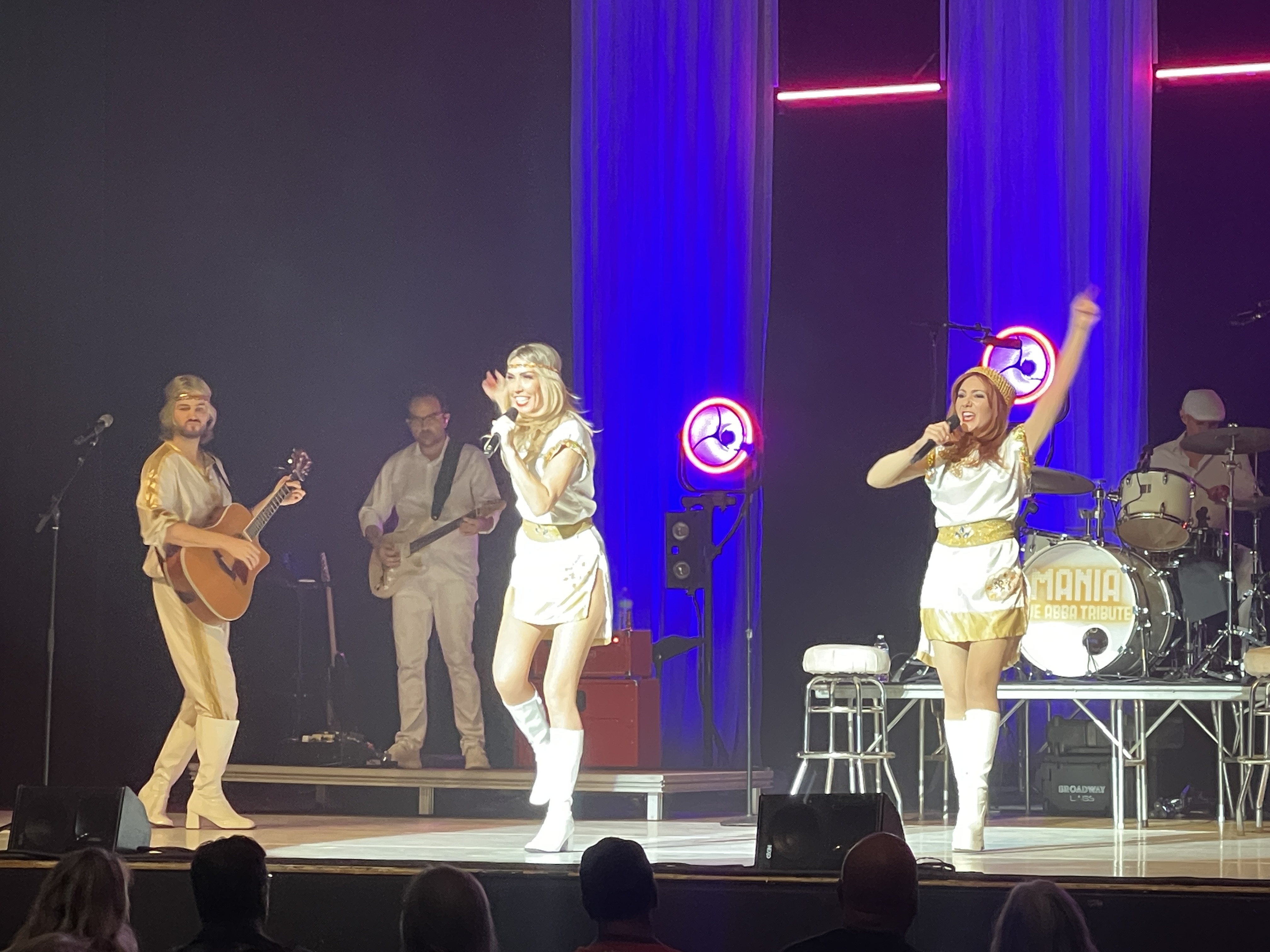 Fast forward to October. “So, are you going to the concert?” my sister, Susie, texted. “Concert?” I hadn’t a clue. “ABBA!” she replied. Now that struck a chord – Rich has been an avid ABBA fan forever. Rarely a day goes by that I don’t hear an ABBA music video emanating from his phone. How could we not have known? Quickly confirming the quality of Mania: The ABBA Tribune band, he soon pressed Purchase for the concert just over a week hence.