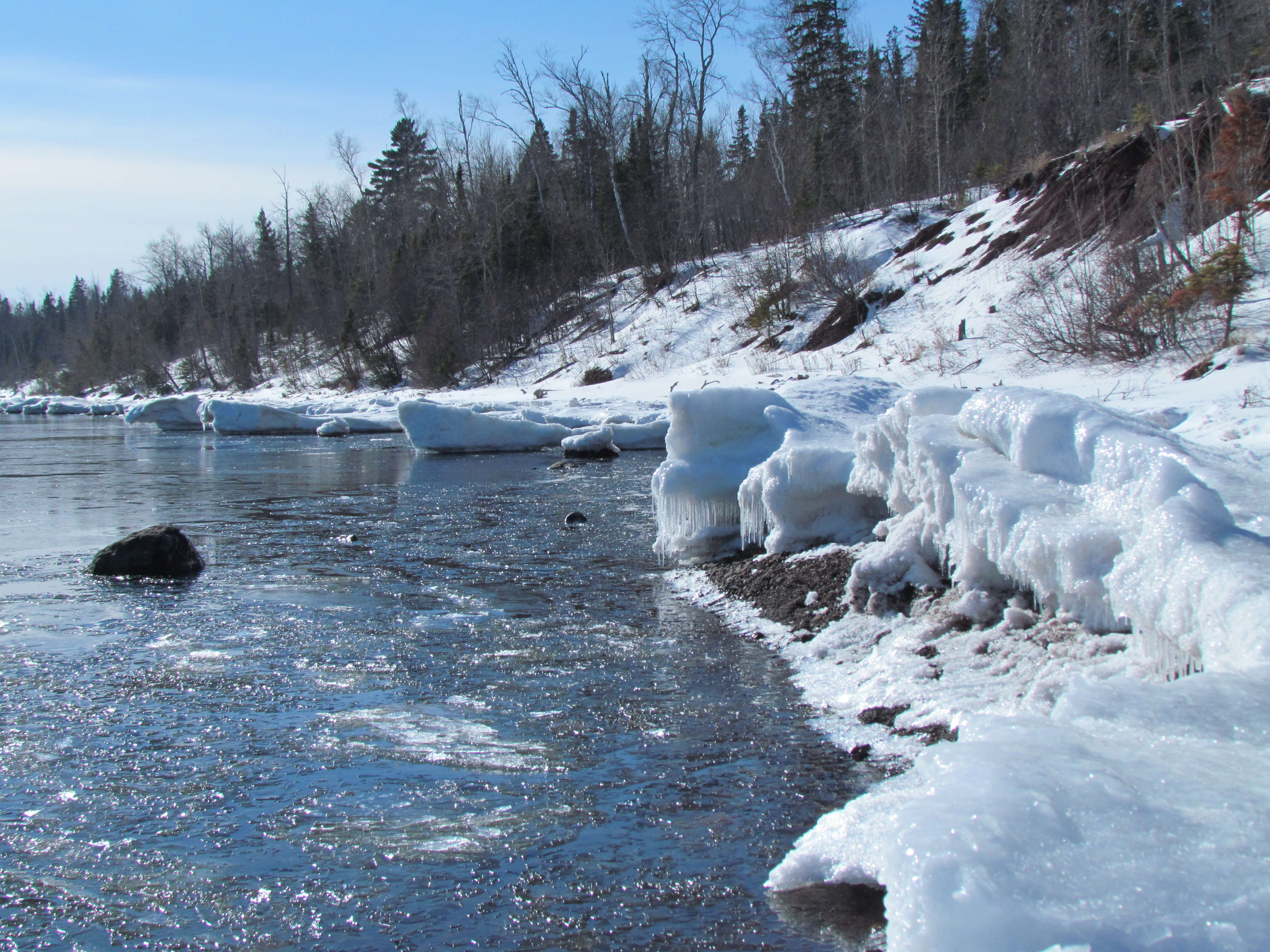 much thinner there, but Brighton Beach’s rocks were encased in a thick coat of ice, which was beautiful but treacherous for any kind of foot travel. Backing up from the shoreline, we found a cache of rocks under the snow and proceeded to do what any kid would do there – throw rocks in the lake. Since the shoreline was ice-bound, it became a game to see who could break through the ice with a rock, producing a mini spurt of water through the hole. What better way to spend Christmas afternoon, than having a rock throwing contest amid ice and snow?