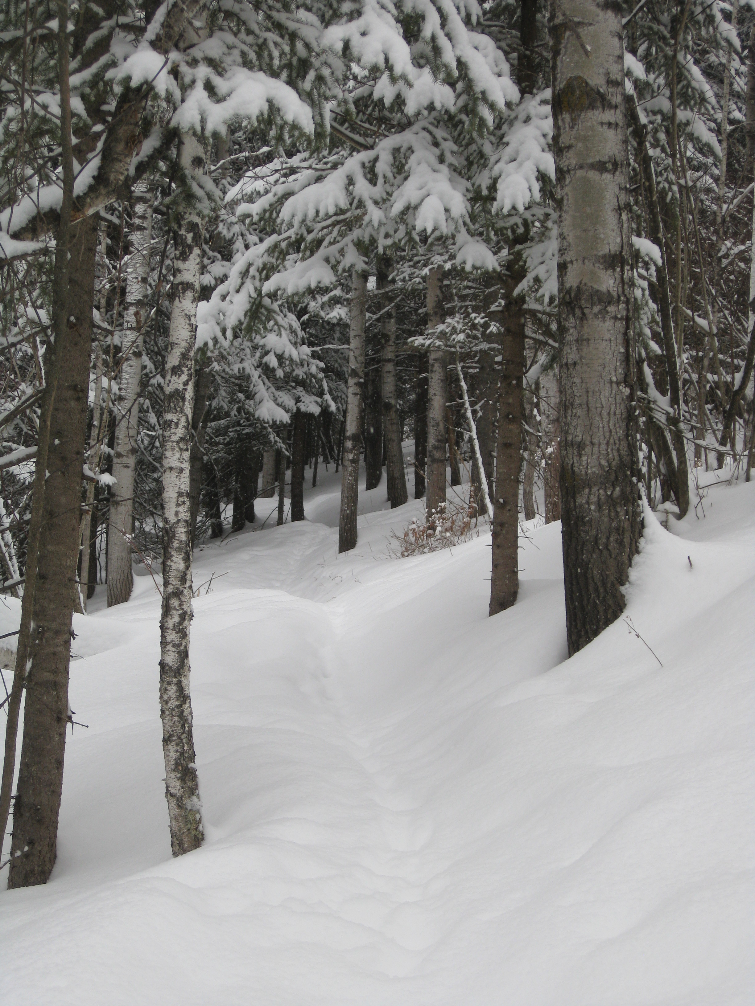 On Christmas day my sons and I headed out on snowshoes to enjoy the deep powdery snow. After averting near disaster when my foot broke through into the flowing Amity Creek, we sought safer ground and stuck to trampling through the woods. With big fat snowflakes falling, it was an idyllic scene. We eventually made our way down to the Big Lake. The snow layer was