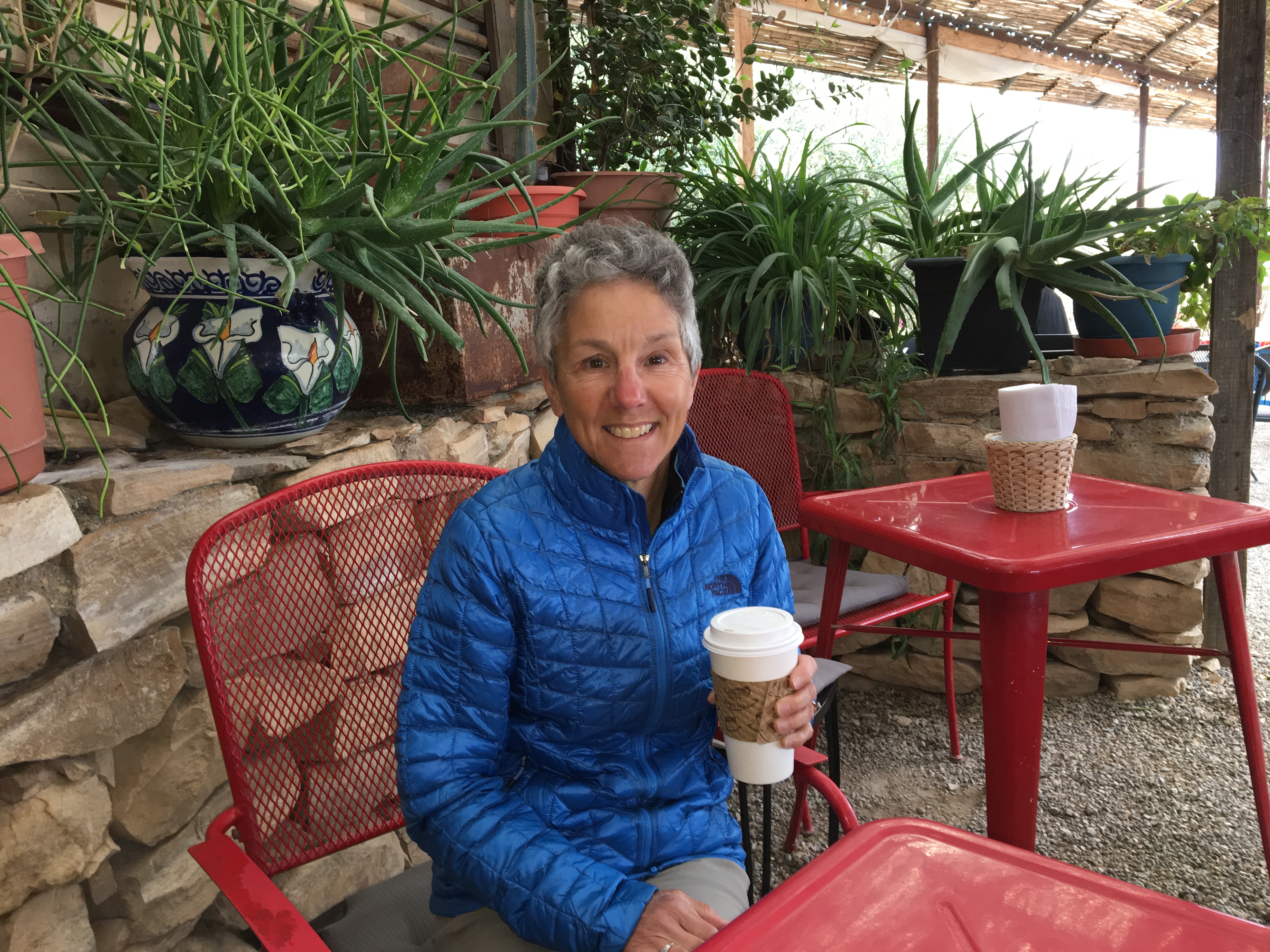 We experienced the extremes of the desert climate when the next day dawned cloudy, super windy and 46 degrees. In no hurry to rush out into the chill we headed back into Terlingua to Espresso Y Poco Mas. Geared for the desert heat, the eclectic café offered only outdoor seating. Settling ourselves at a well sheltered table, we were surprisingly comfortable and delighted with the breakfast tortillas. But we were thankful for our Minnesota clothes stashed in the car!